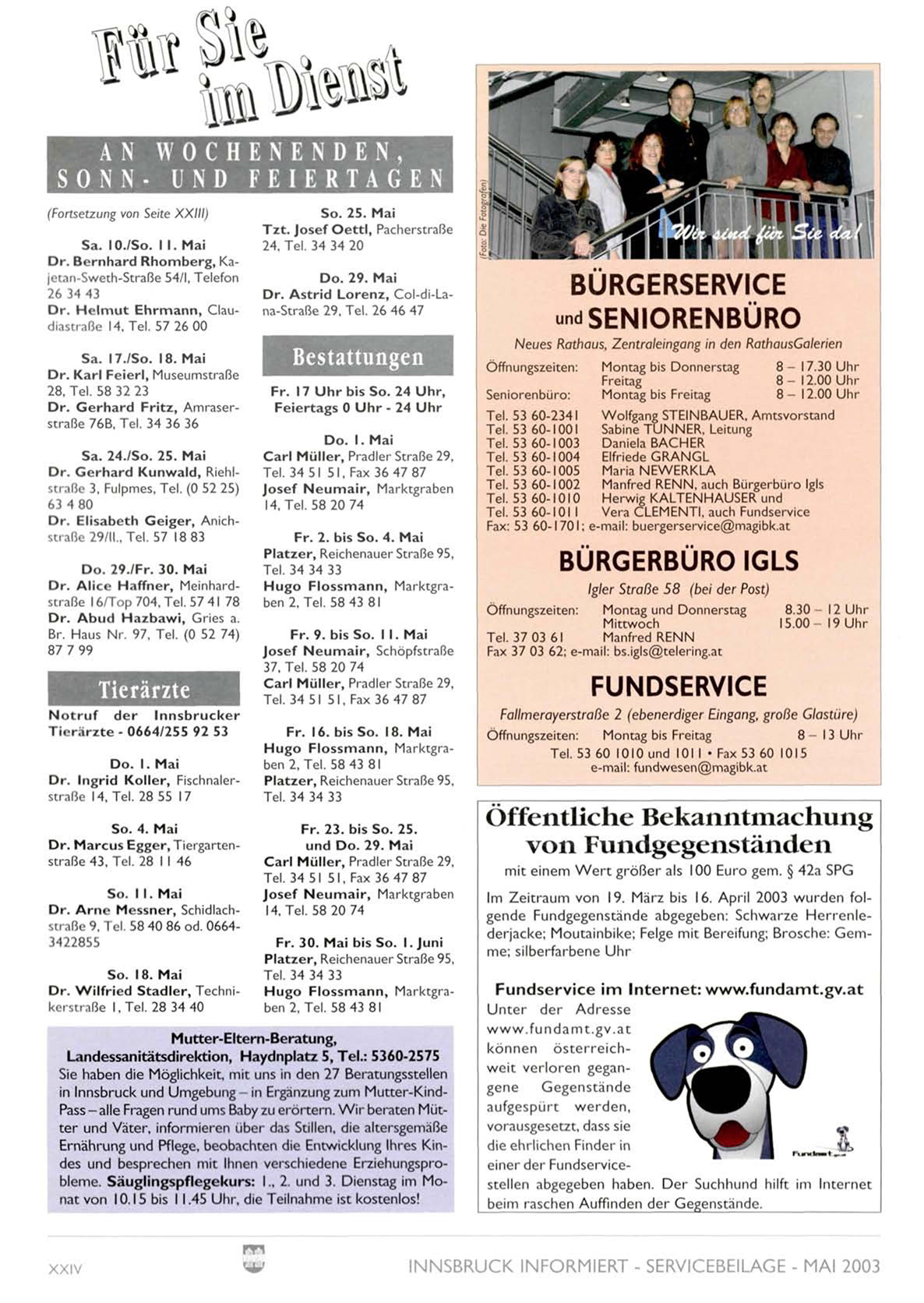 INNSBRUCK INFORMIERT - SERVICEBEILAGE - MAI 2003