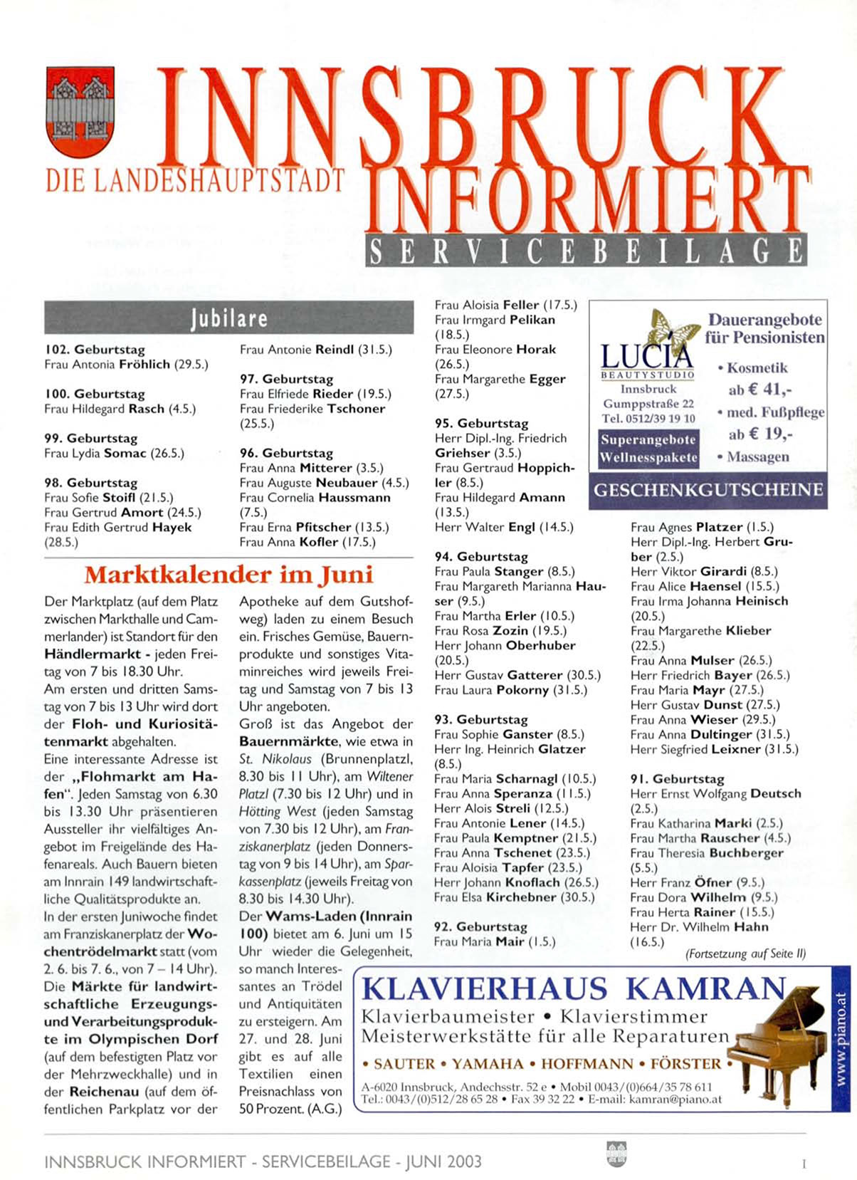 INNSBRUCK INFORMIERT - SERVICEBEILAGE -JUNI 2003