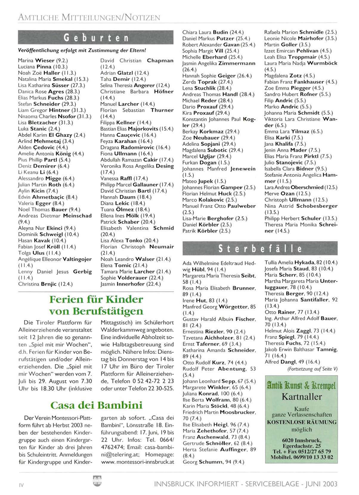 INNSBRUCK INFORMIERT - SERVICEBEILAGE - JUNI 2003