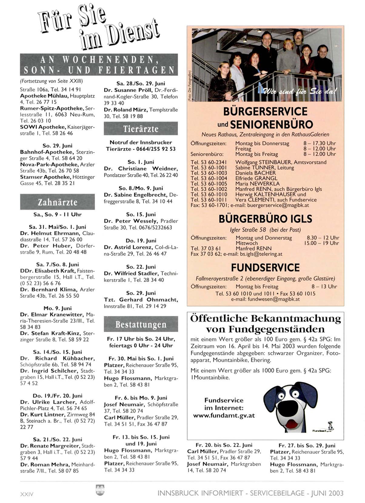 INNSBRUCK INFORMIERT - SERVICEBEILAGE -JUNI 2003