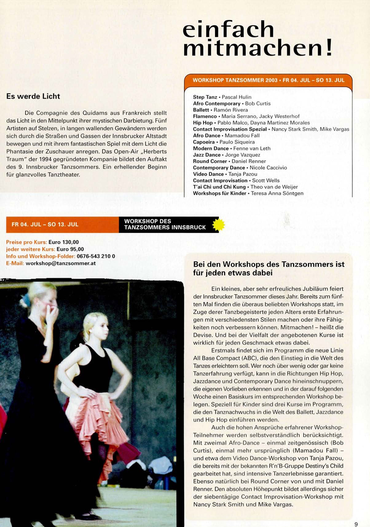 der Innsbrucker Tanzsommer dieses Jahr. Bereits zum fünften Mal finden die überaus beliebten Workshops statt, im