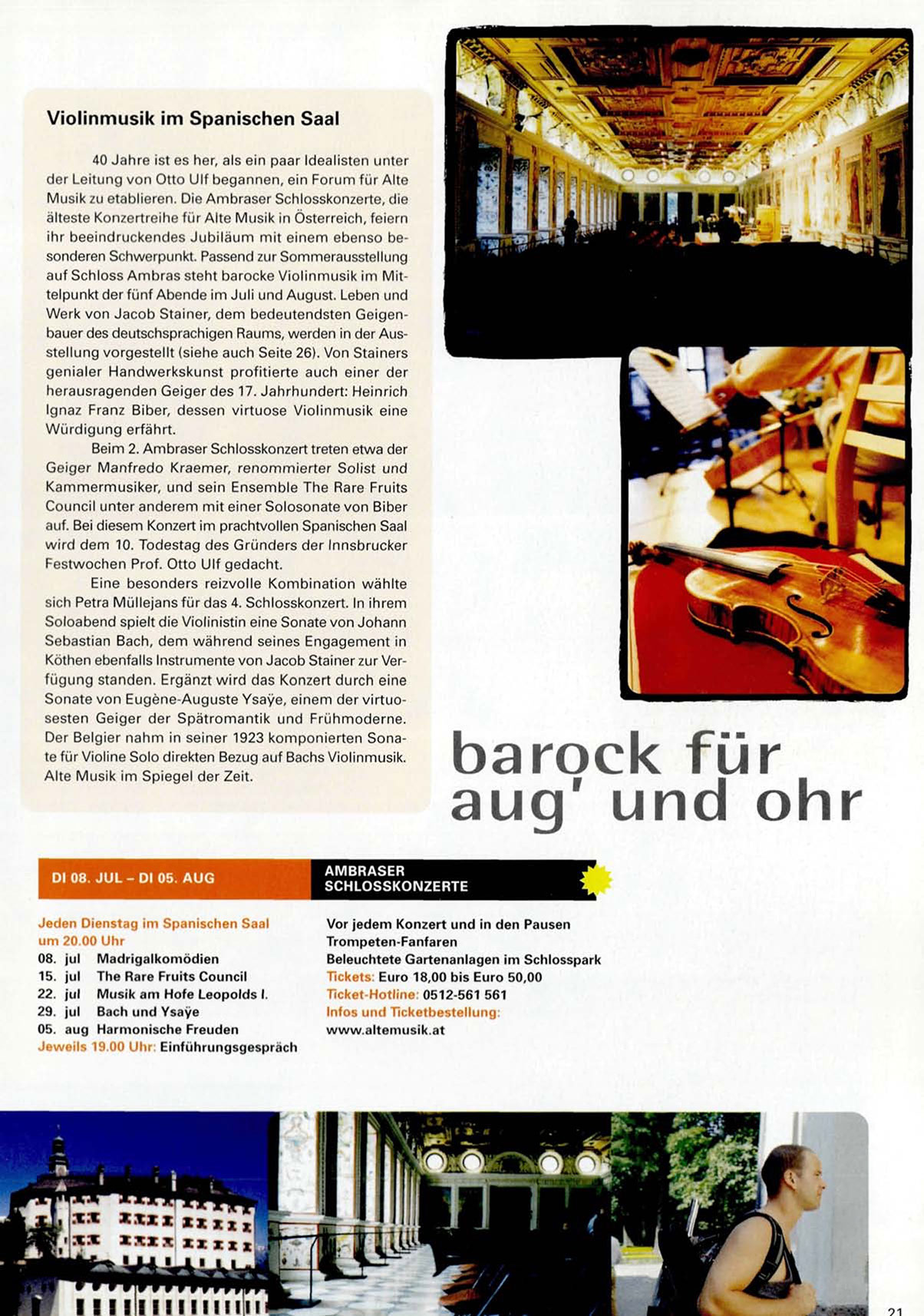 auf Schloss A m b r a s steht barocke Violinmusik im Mittelpunkt der fünf Abende im Juli und August. Leben und