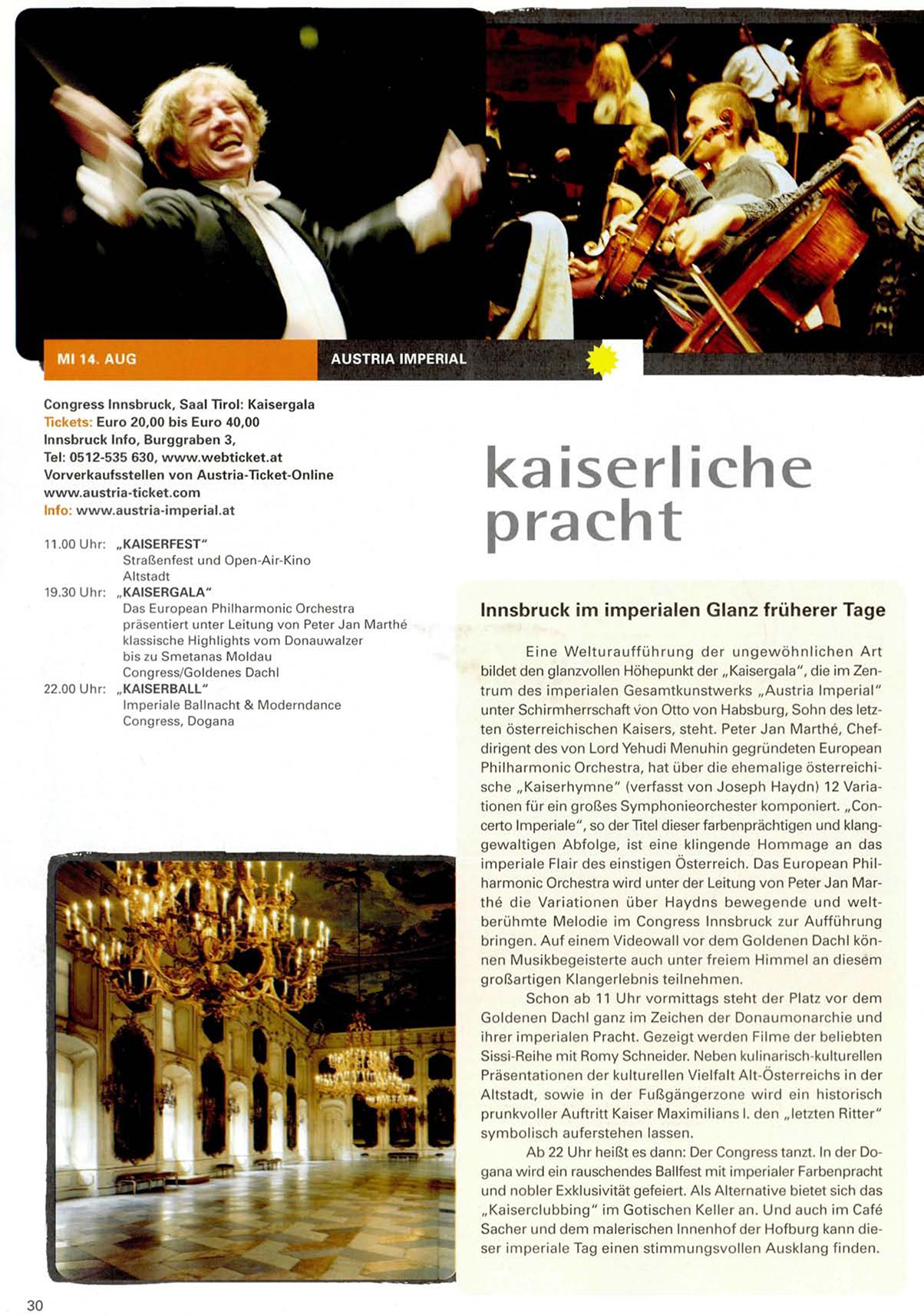imperiale Flair des einstigen Österreich. Das European Philharmonie Orchestra wird unter der Leitung von Peter Jan Marthe die V a r i a t i o n e n über H a y d n s b e w e g e n d e u n d w e l t b e r ü h m t e Melodie im Congress Innsbruck zur A u f f ü h r u n g