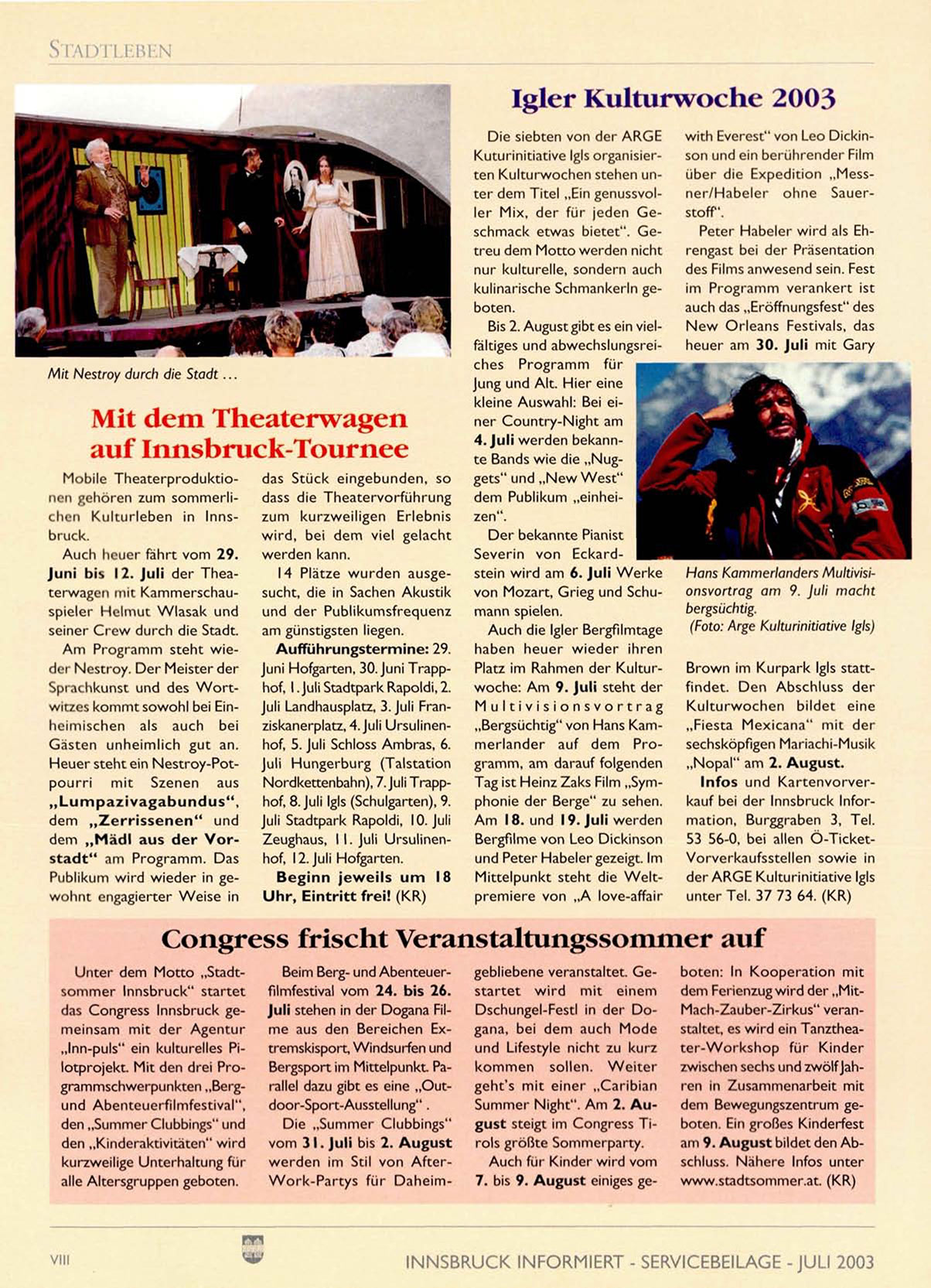 INNSBRUCK INFORMIERT - SERVICEBEILAGE -JULI 2003