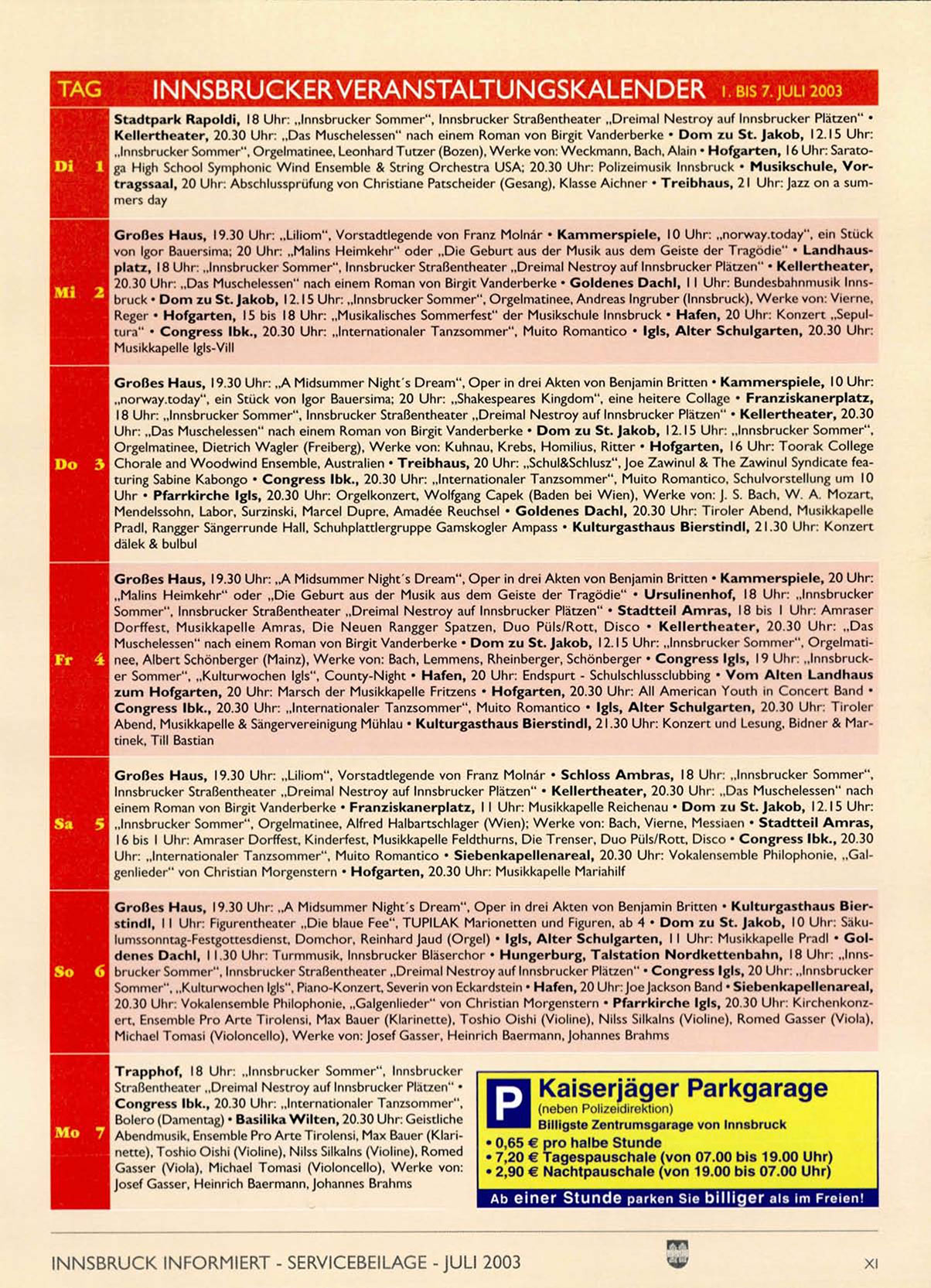 INNSBRUCK INFORMIERT - SERVICEBEILAGE - JULI 2003