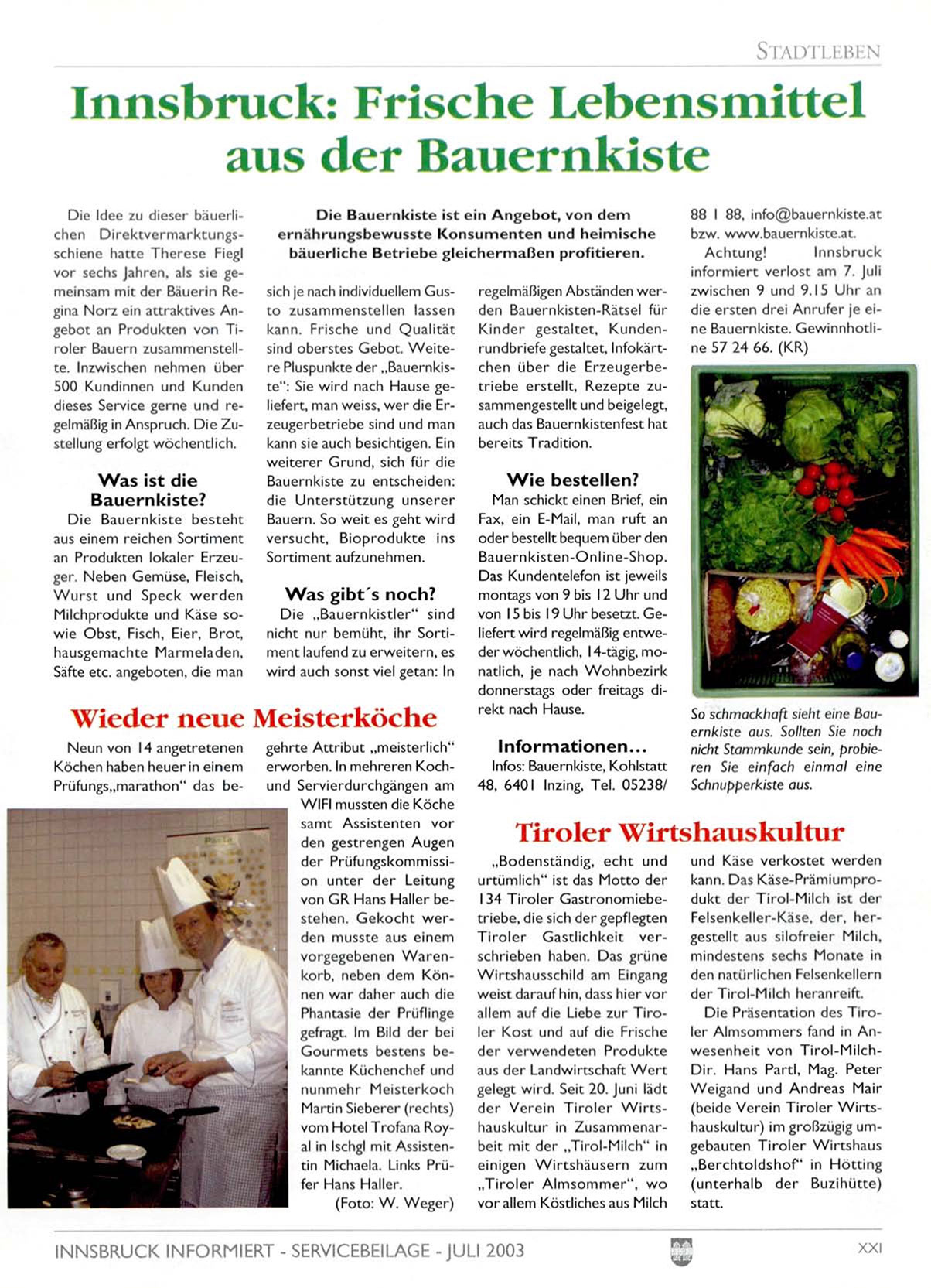 INNSBRUCK INFORMIERT - SERVICEBEILAGE -JULI 2003