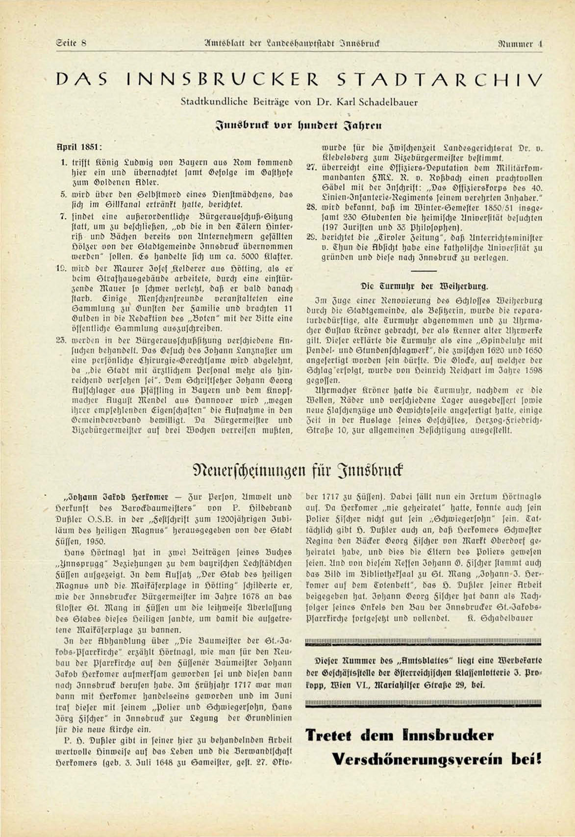 Duftler O.3.IZ. in der „ßestschrift zum 1300jährigen Jubiläum des heiligen Magnus" herausgegeben von der Stadt