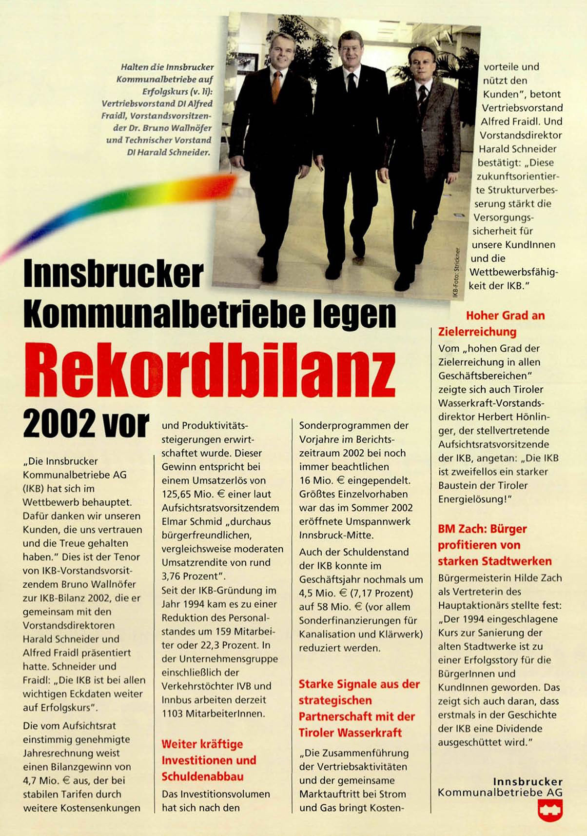 Fraidl, Vorstandsvorsitzender Dr. Bruno Wallnöfer