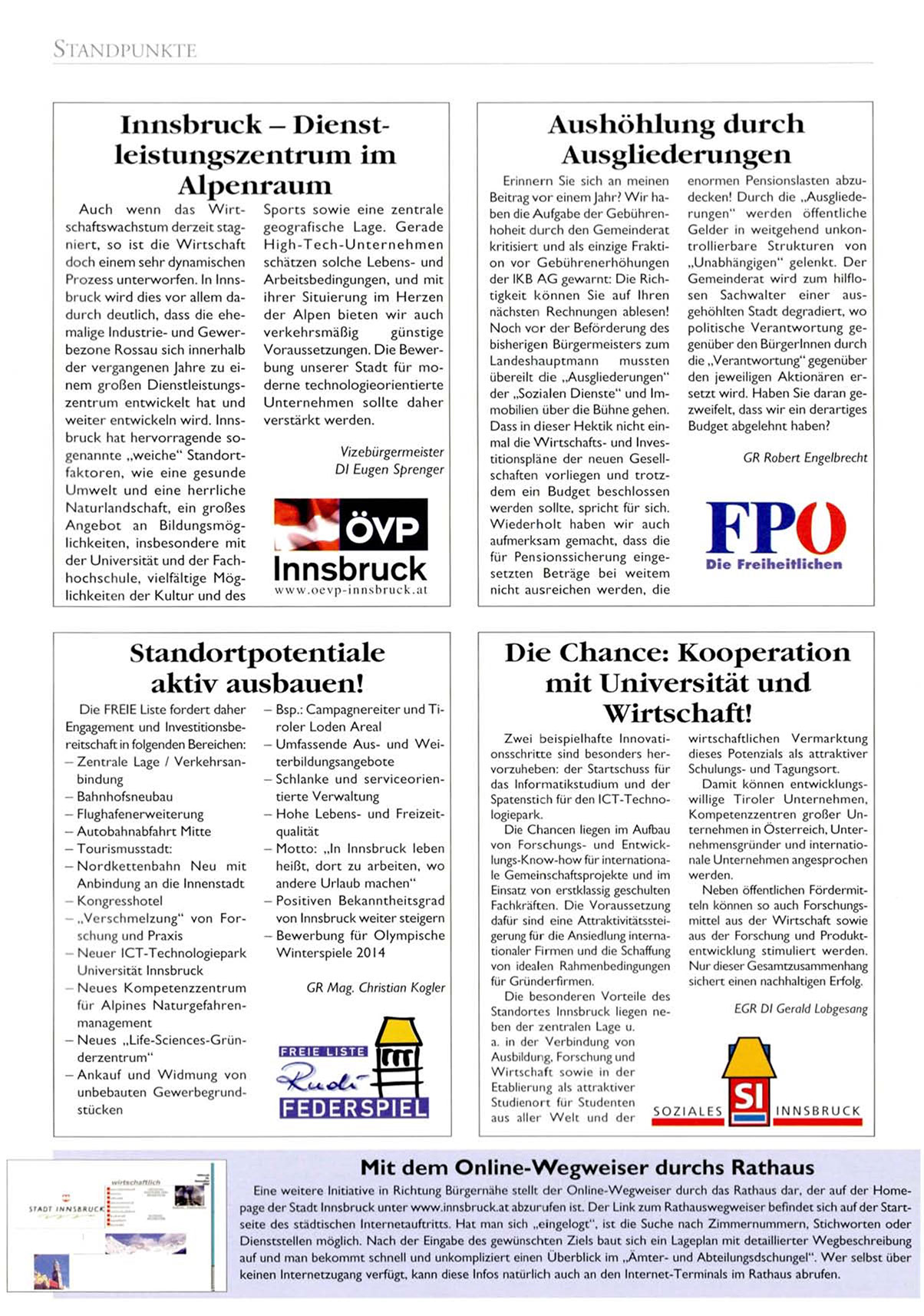 Eine weitere Initiative in Richtung Bürgernaho stellt der Online-Wegweiser durch das Rathaus dar, der auf der Homepage der Stadt Innsbruck unter www.innsbruck.at abzurufen ist. Der Link zum Rathaus Wegweiser befindet sich auf der Startseite des städtischen Internetauftritts. Hat man sich „eingelegt", ist die Suche nach Zimmernummern, Stichwörter» oder