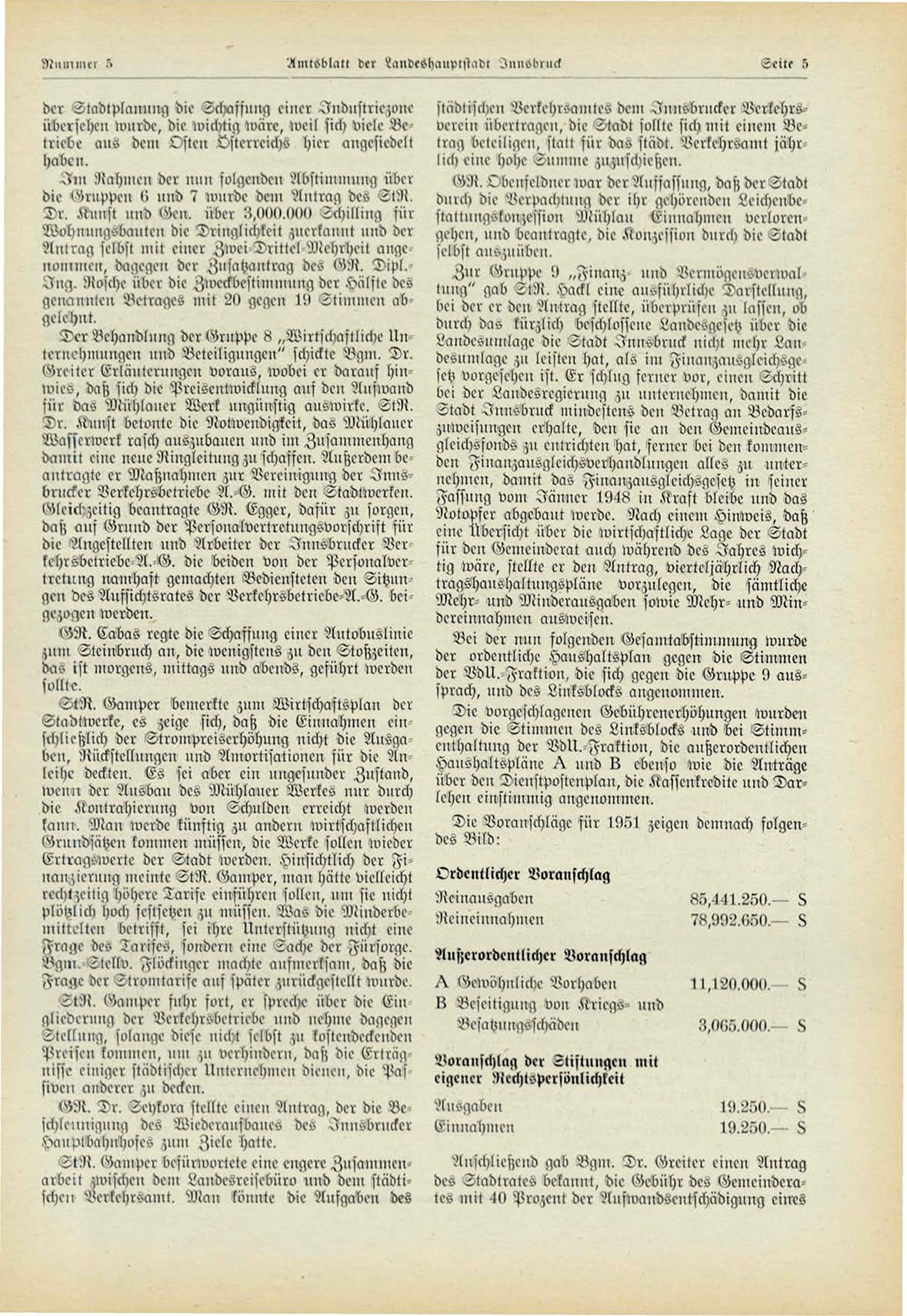 Die Voranschlägc für 1951 zeigen demnach folgendes Bild: