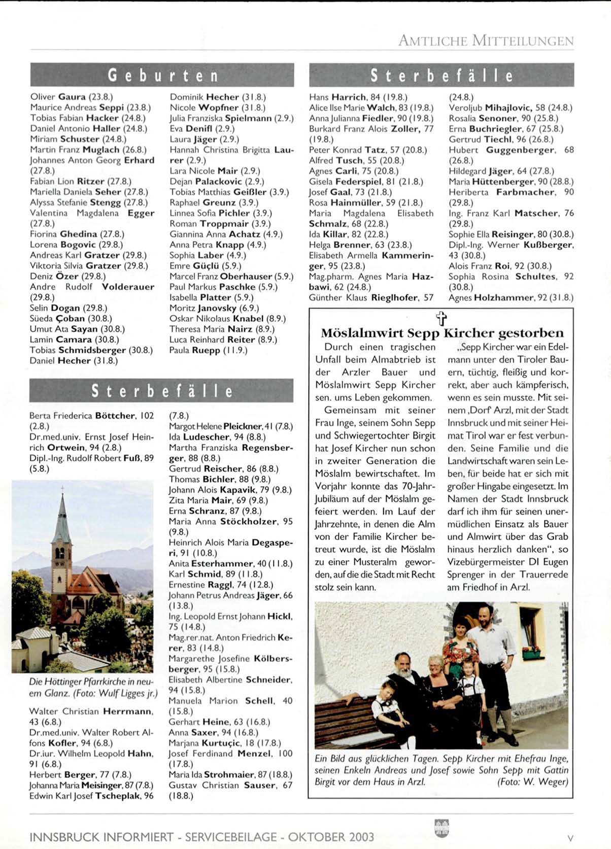 INNSBRUCK INFORMIERT - SERVICEBEILAGE - OKTOBER 2003