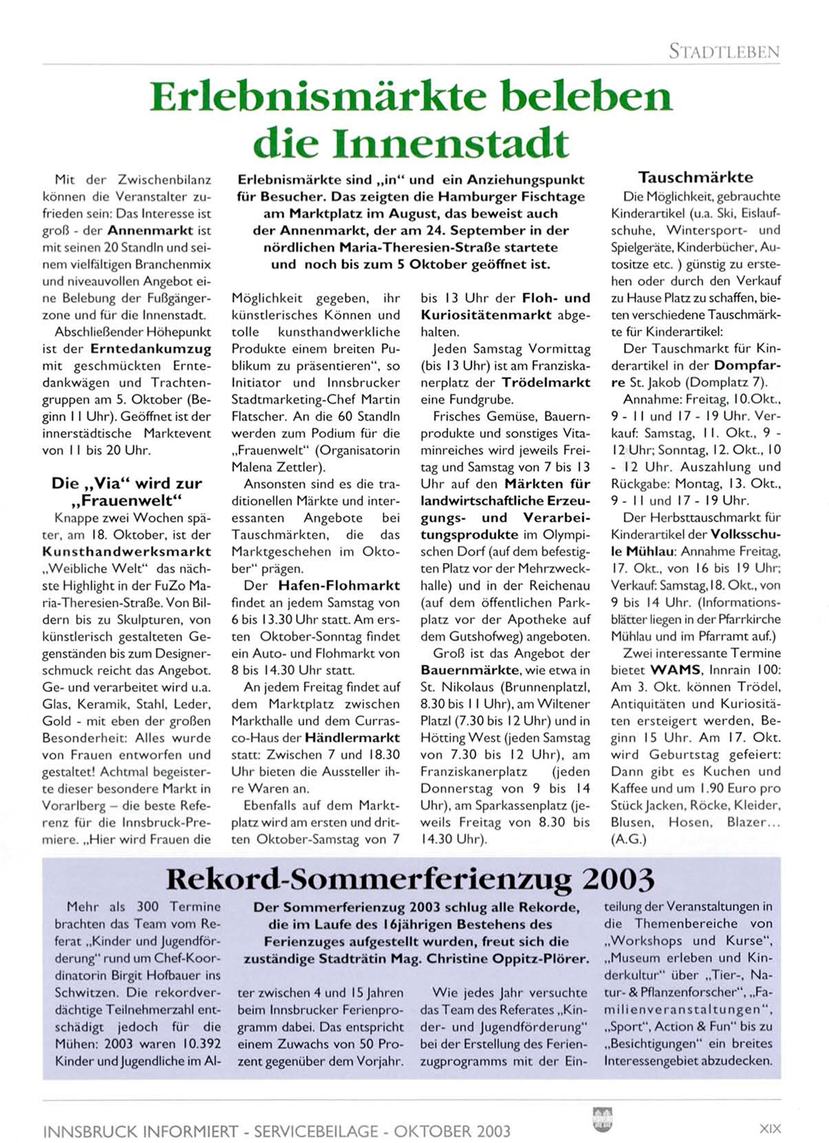 INNSBRUCK INFORMIERT - SERVICEBEILAGE - OKTOBER 2003