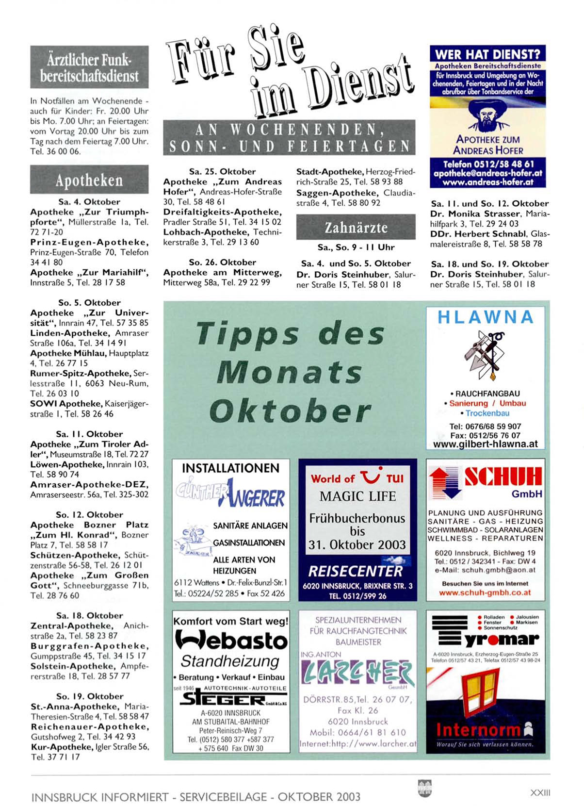 INNSBRUCK INFORMIERT - SERVICEBEILAGE - OKTOBER 2003