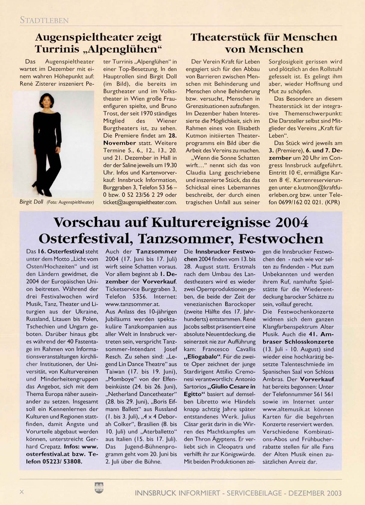 INNSBRUCK INFORMIERT - SERVICEBEILAGE - DEZEMBER 2003