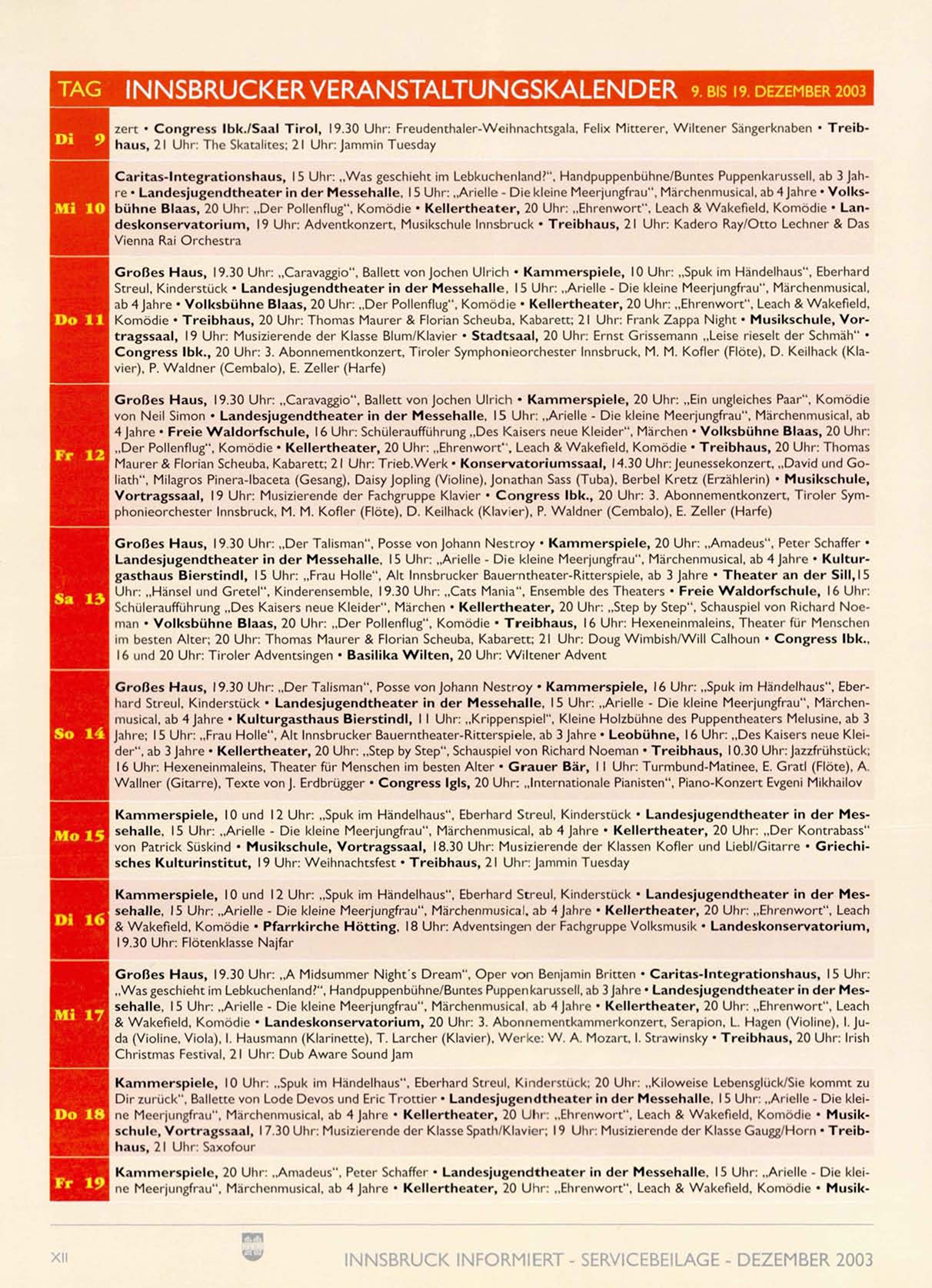 INNSBRUCK INFORMIERT - SERVICEBEILAGE - DEZEMBER 2003