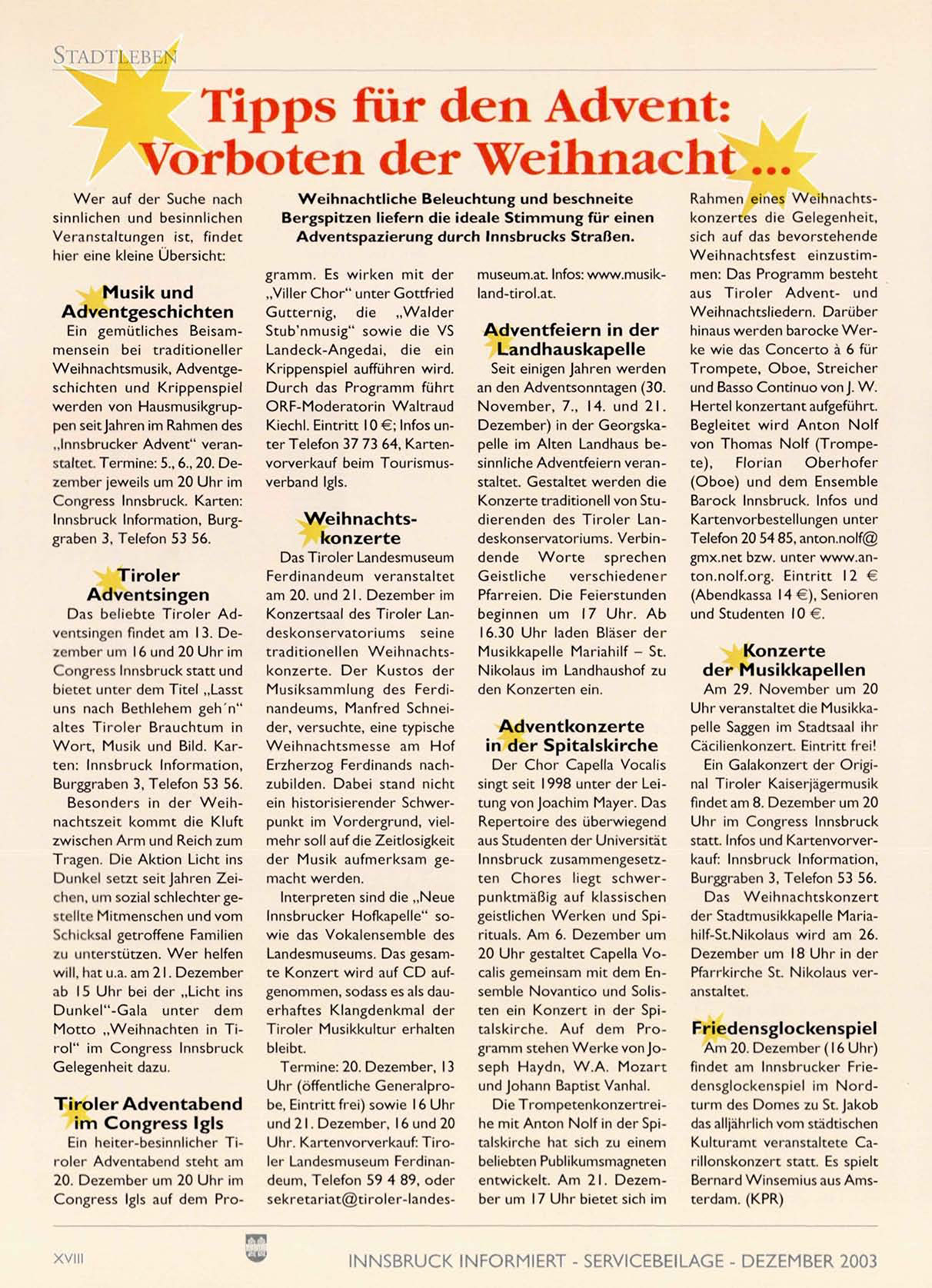 INNSBRUCK INFORMIERT - SERVICEBEILAGE - DEZEMBER 2003