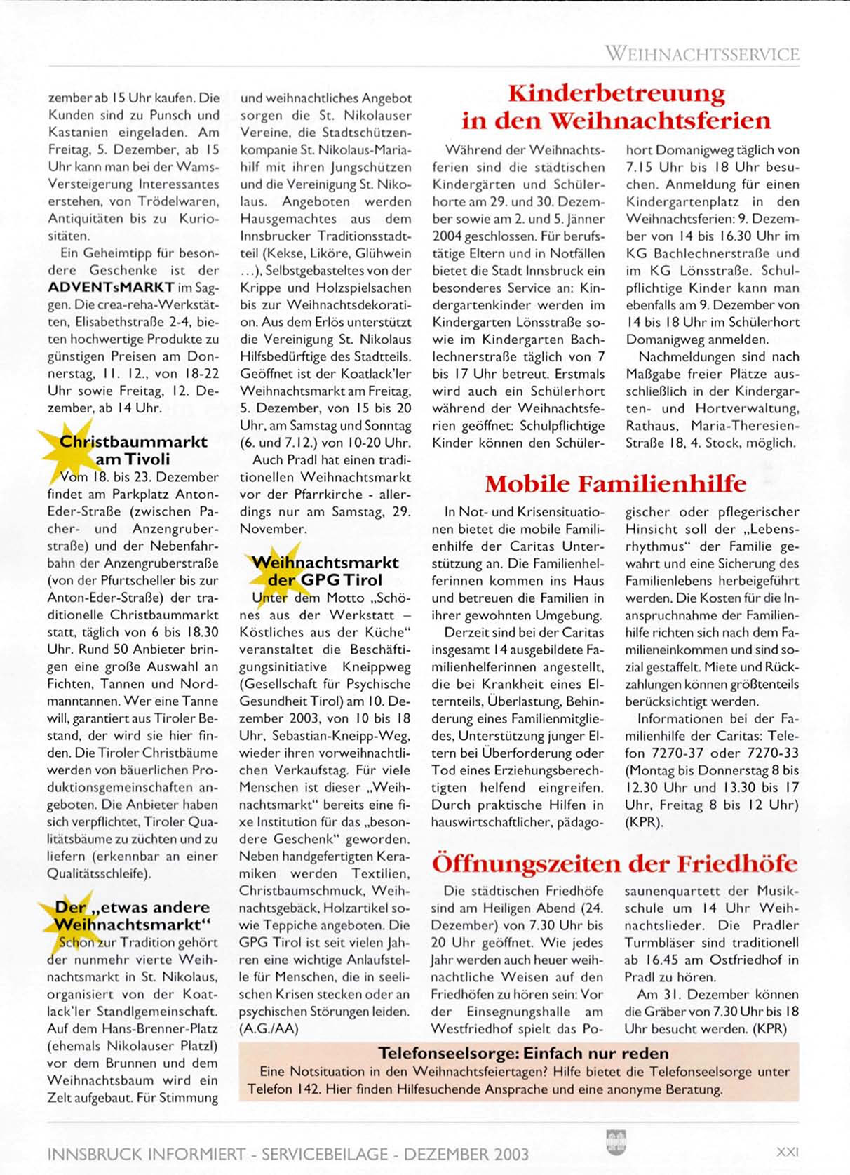 INNSBRUCK INFORMIERT - SERVICEBEILAGE - DEZEMBER 2003