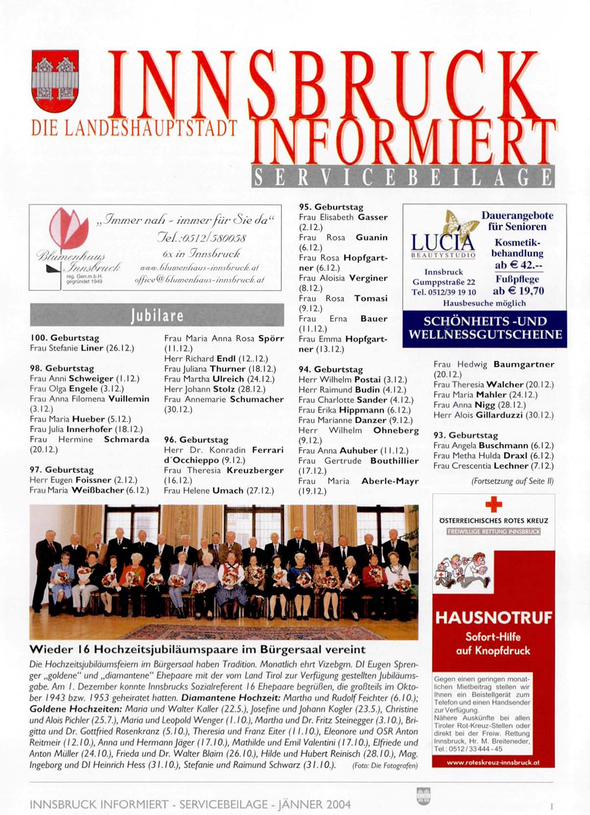 INNSBRUCK INFORMIERT - SERVICEBEILAGE -JÄNNER 2004