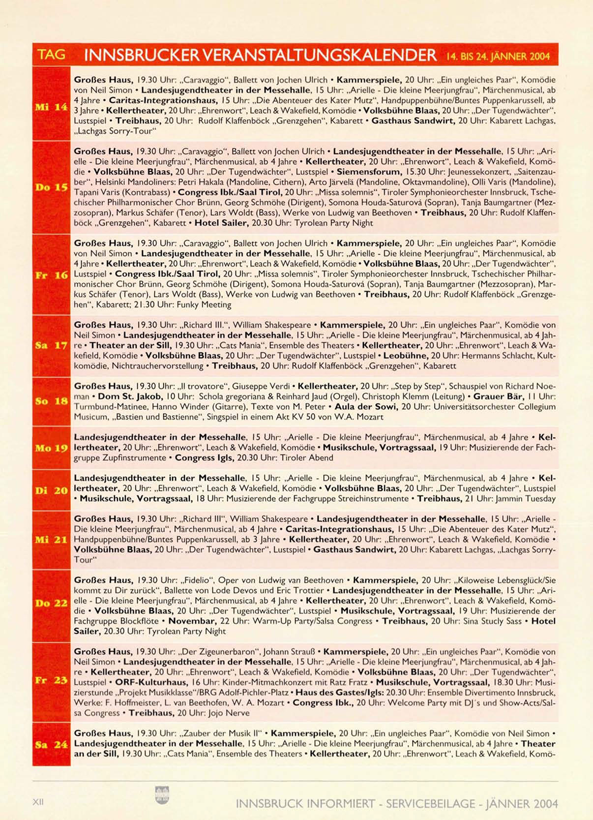 INNSBRUCK INFORMIERT - SERVICEBEILAGE -JÄNNER 2004