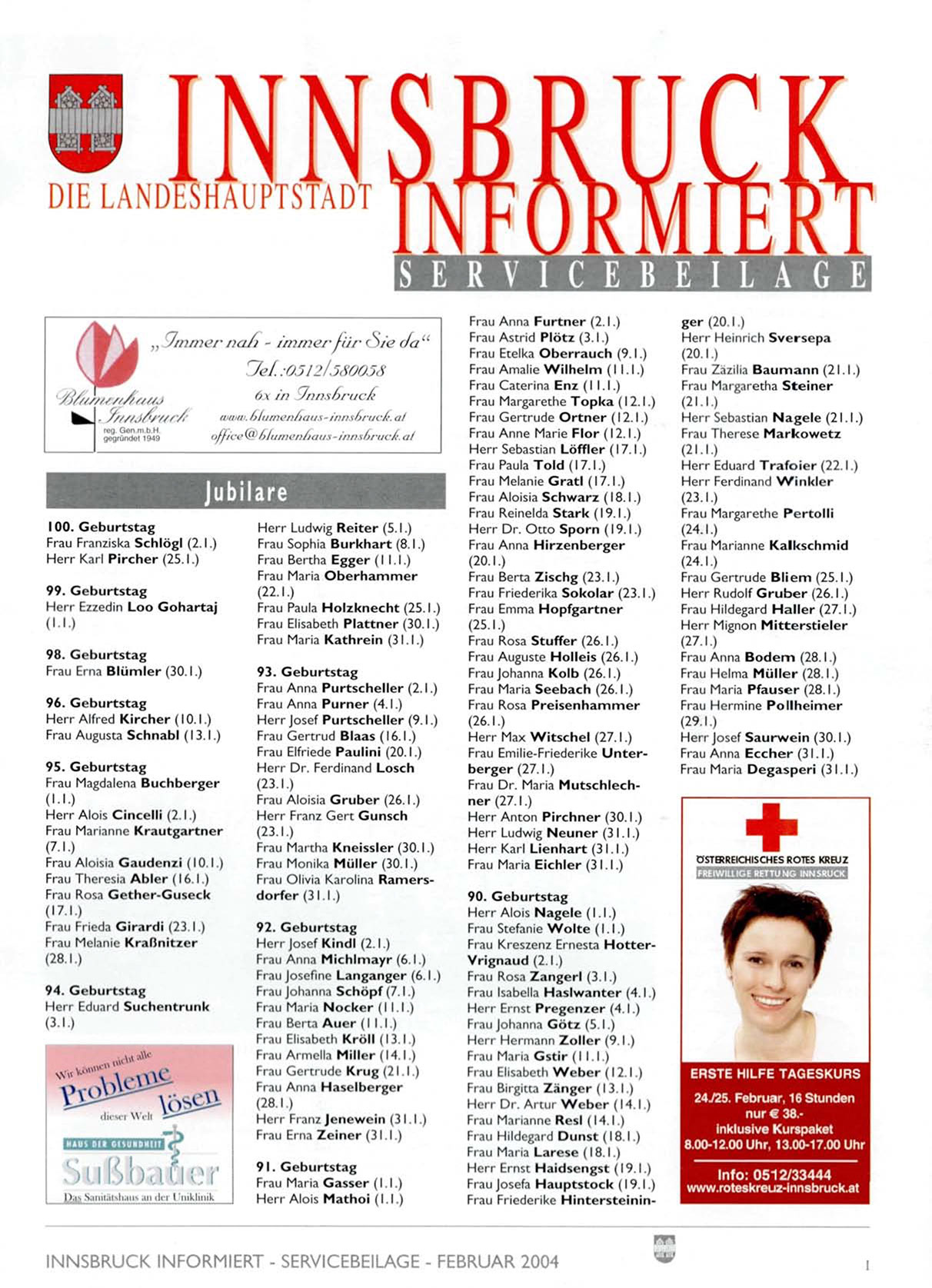 INNSBRUCK INFORMIERT - SERVICEBEILAGE - FEBRUAR 2004
