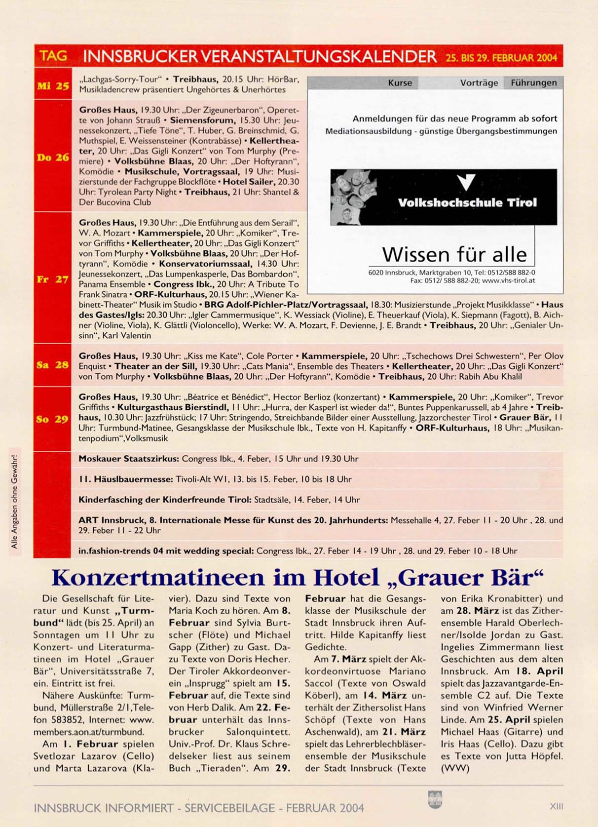 INNSBRUCK INFORMIERT - SERVICEBEILAGE - FEBRUAR 2004