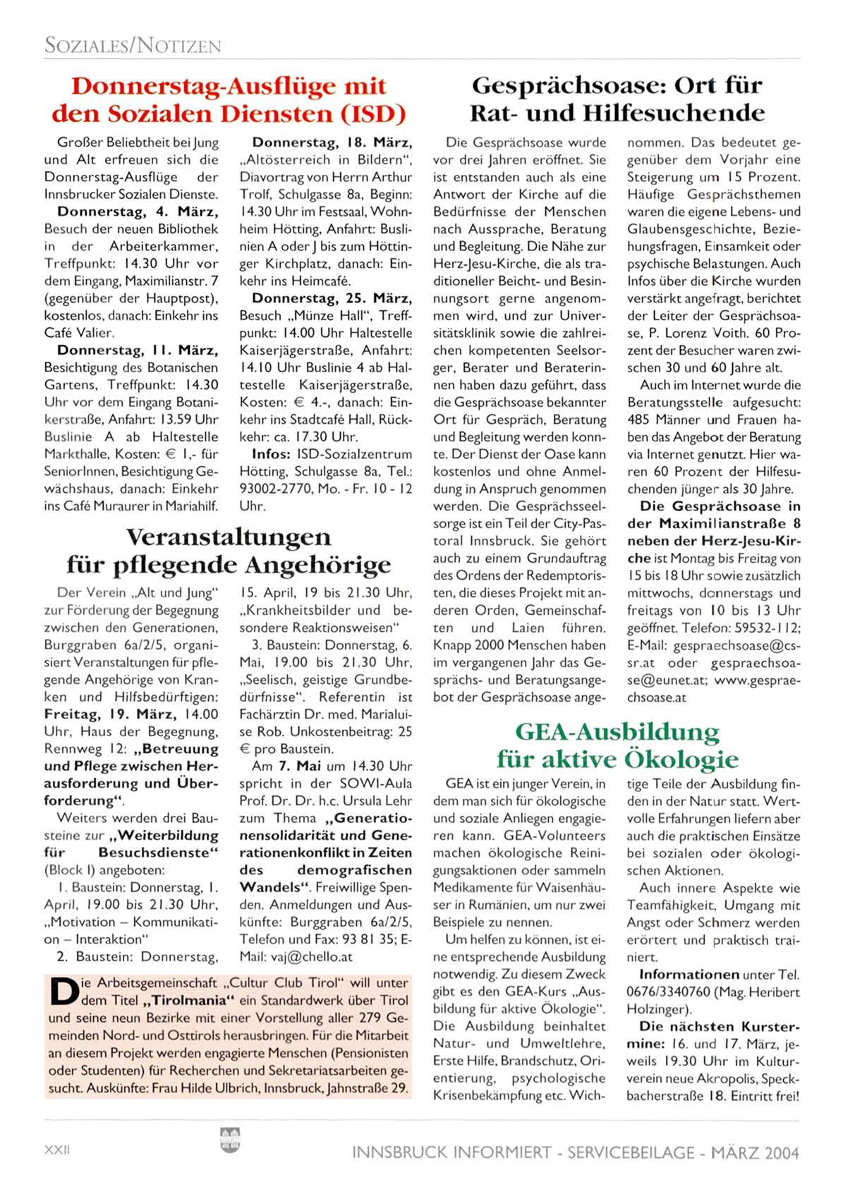 INNSBRUCK INFORMIERT - SERVICEBEILAGE - MÄRZ 2004