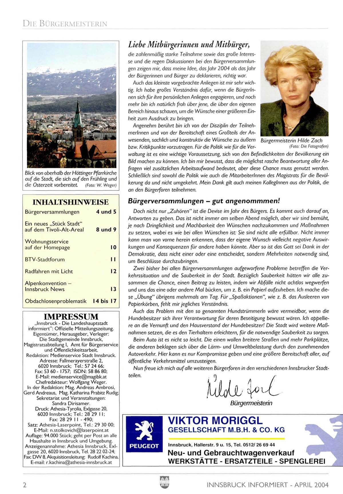 die zahlenmäßig starke Teilnahme sowie das große Interesse und die regen Diskussionen bei den Bürgerversammlungen zeigen mir, dass meine Idee, das Jahr 2004 als das Jahr
