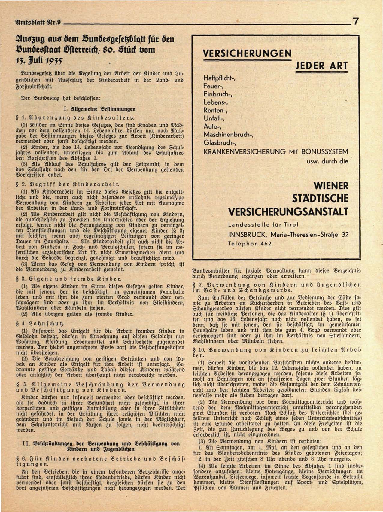 § 7. V e r w e n d u n g v o n K i n d e r n u n d J u g e n d l i c h e n