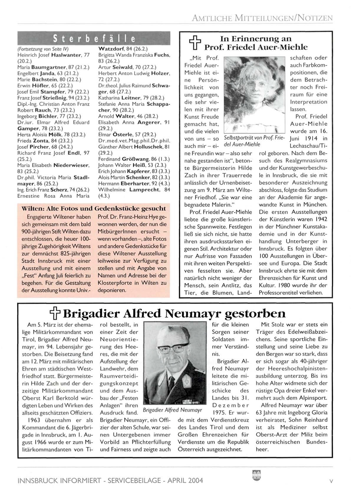 INNSBRUCK INFORMIERT - SERVICEBEILAGE - APRIL 2004