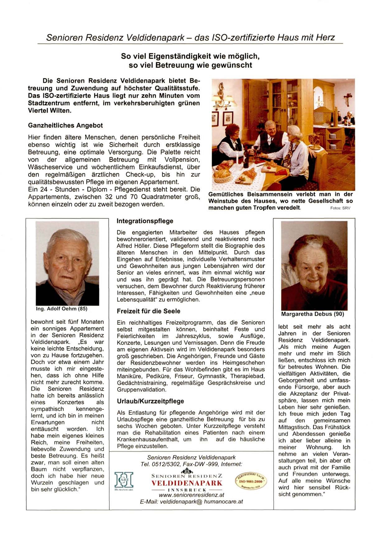 Senioren Residenz Veldidenapark - das ISO-zertifizierte Haus mit Herz