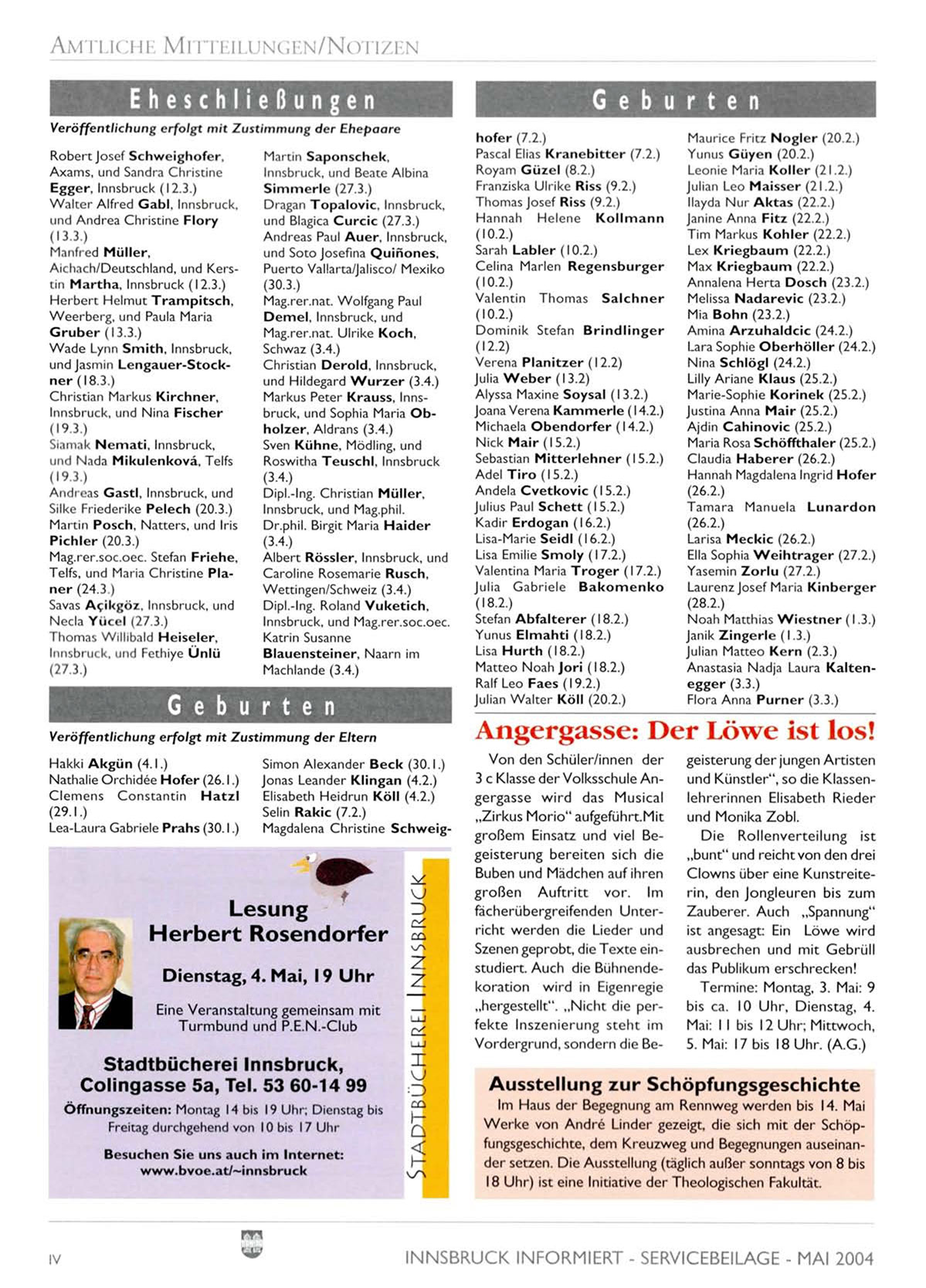 INNSBRUCK INFORMIERT - SERVICEBEILAGE - MAI 2004