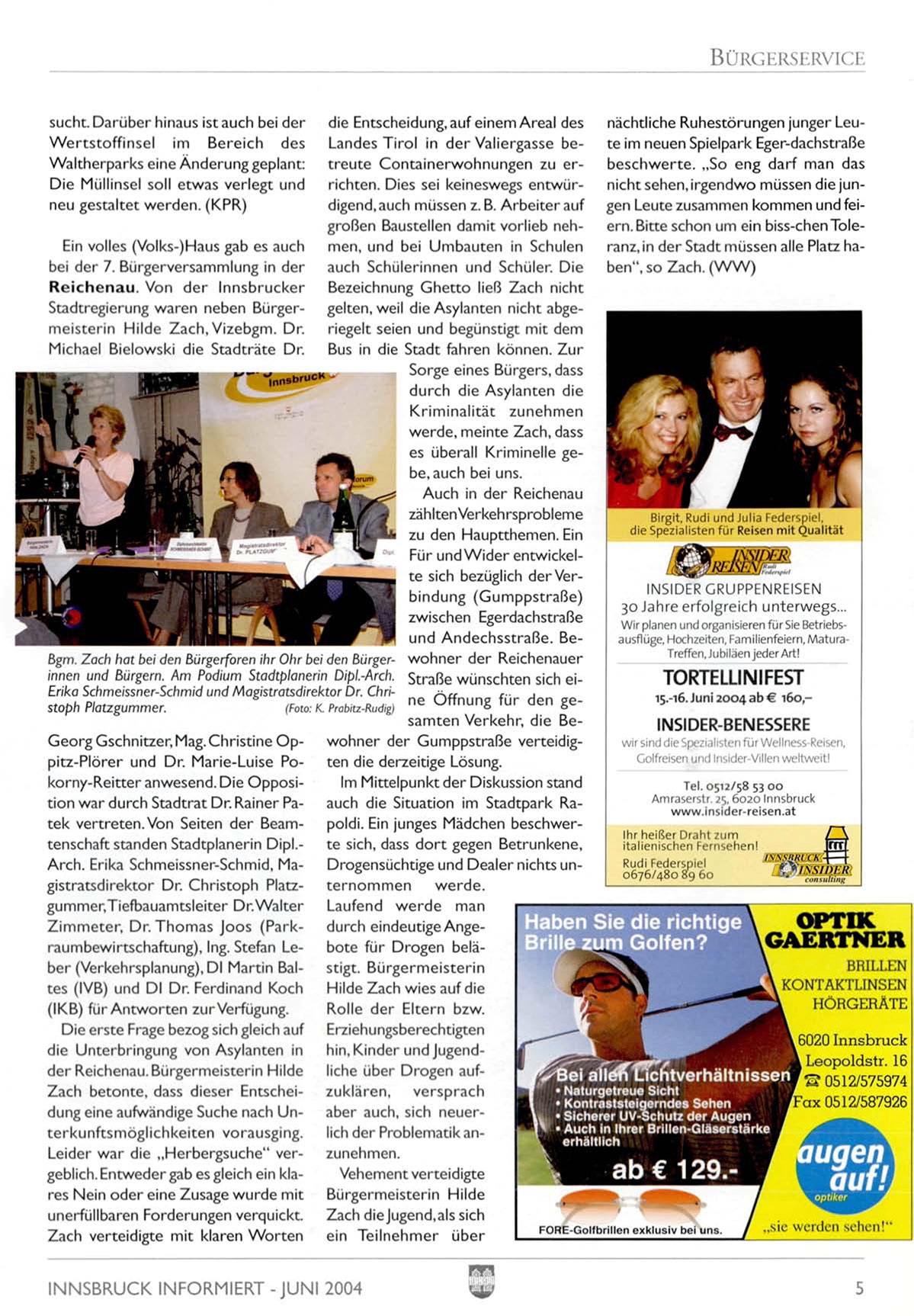 und Andechsstraße. BeBgm. Zach hat bei den Bürgerforen ihr Ohr bei den Bürger- w o h n e r d e r Reichenauer