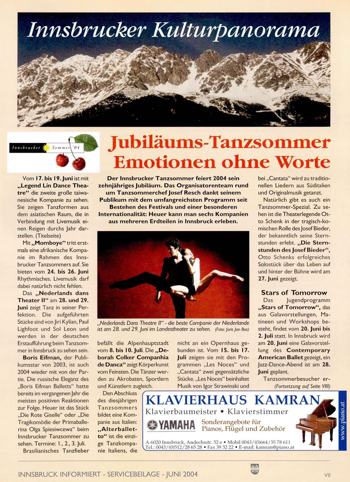 Der Innsbrucker T a n z s o m m e r feiert 2004 sein