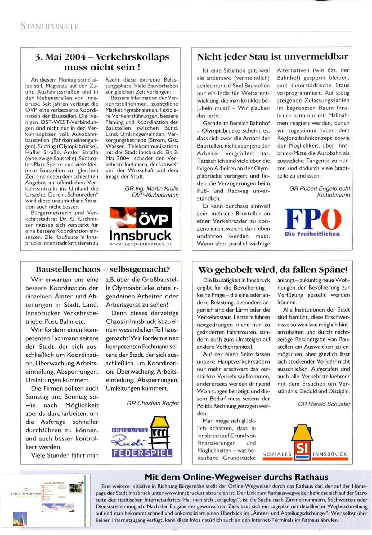 ÖVP eine verbesserte Koordination der Baustellen. Die wenigen OST-WEST-Verbindungen sind nicht nur in den Verkehrsspitzen voll. Autobahnbausteilen (Fahrbahneinengungen), Südring (Olympiabrücke),