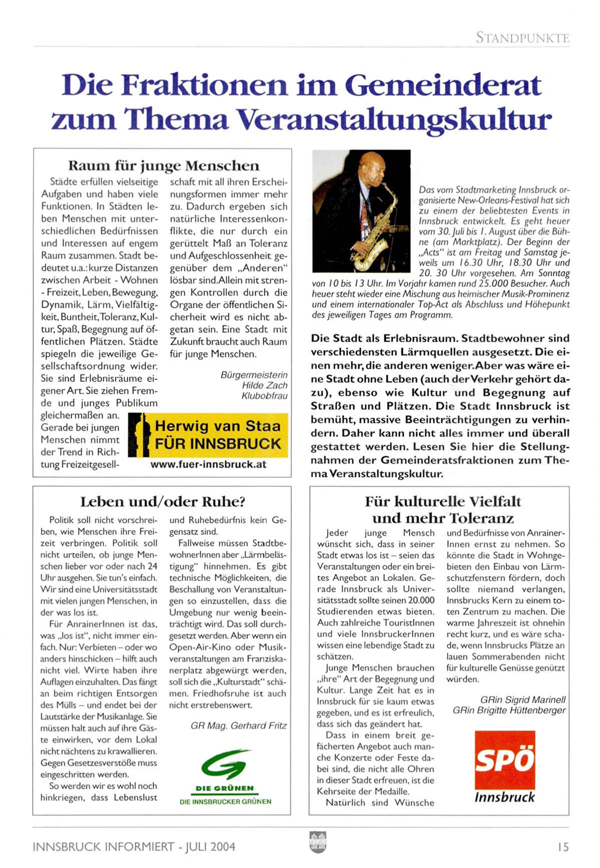 g e s t a t t e t w e r d e n . L e s e n Sie h i e r d i e S t e l l u n g nahmen der Gemeinderatsfraktionen z u m Them a Veranstaltungskultur.