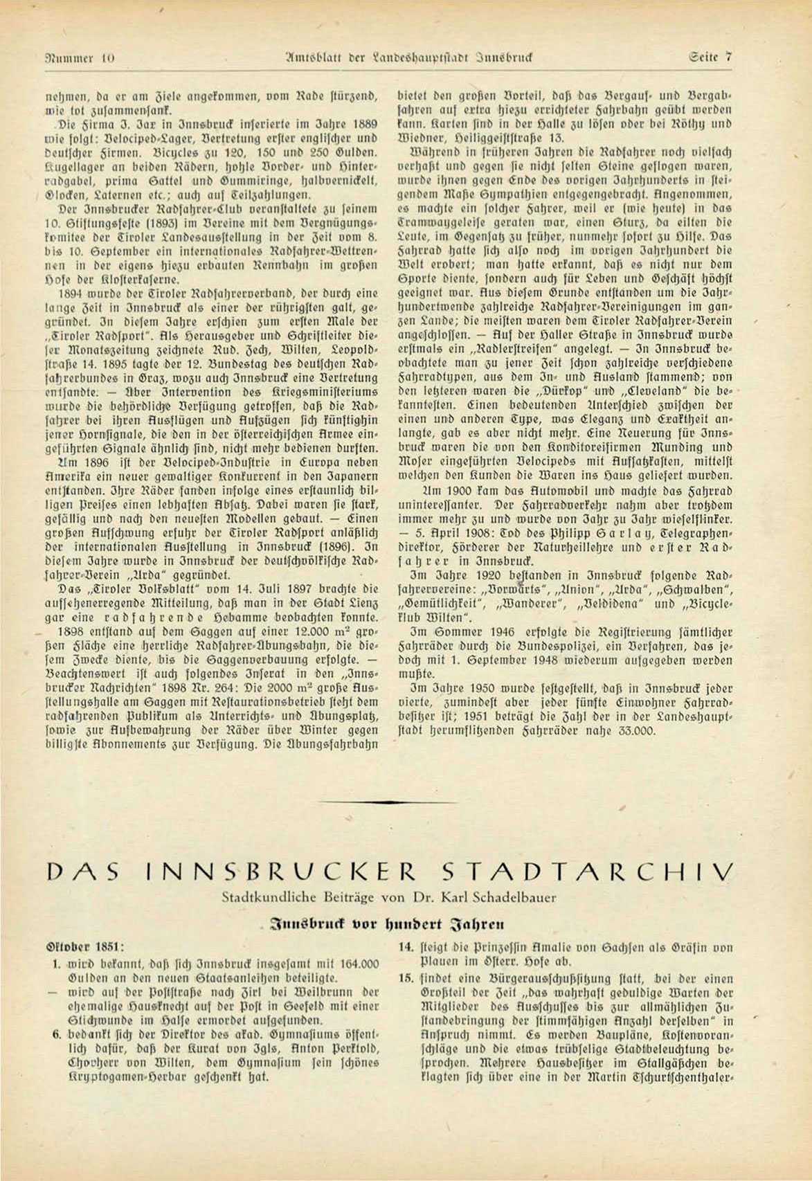 erstmals ein „Radlerstreifen" angelegt. — I » Innsbruck beobachtete man Zu jener Zeit schon zahlreiche verschiedene