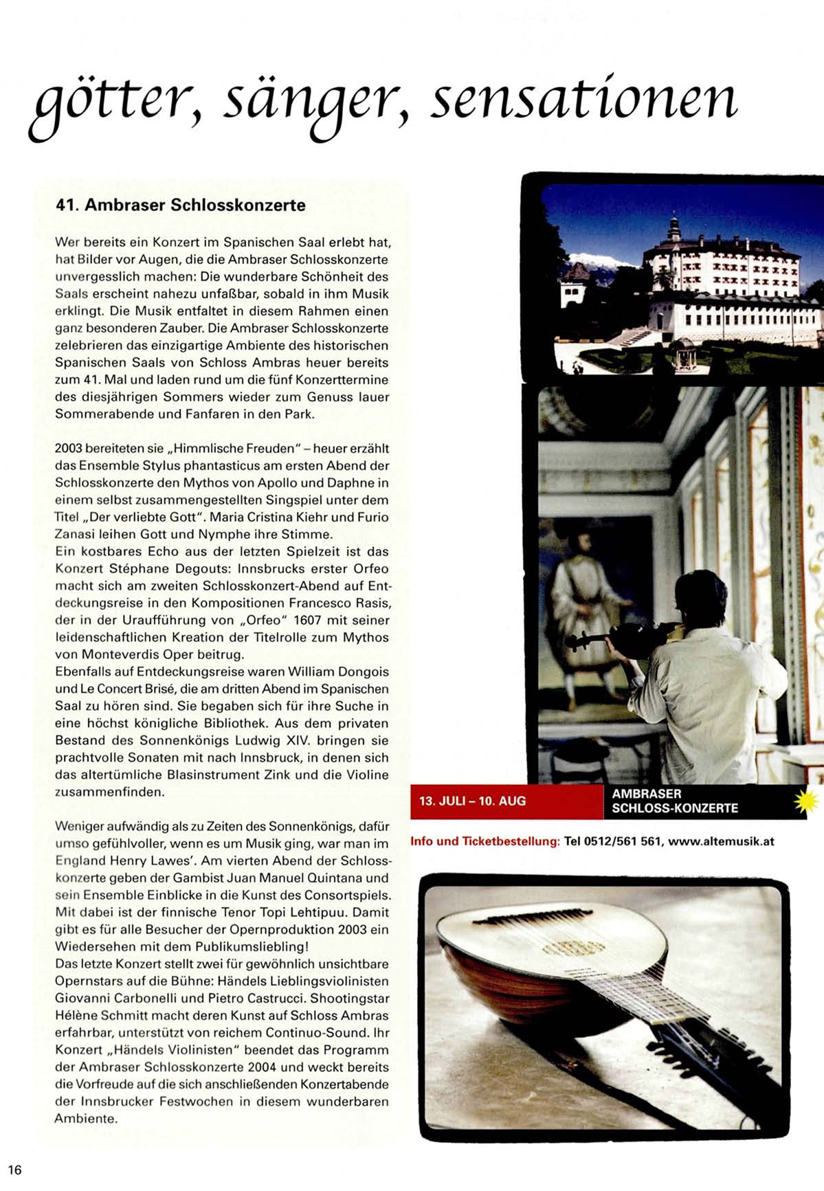 der A m b r a s e r Schlosskonzerte 2004 und weckt bereits