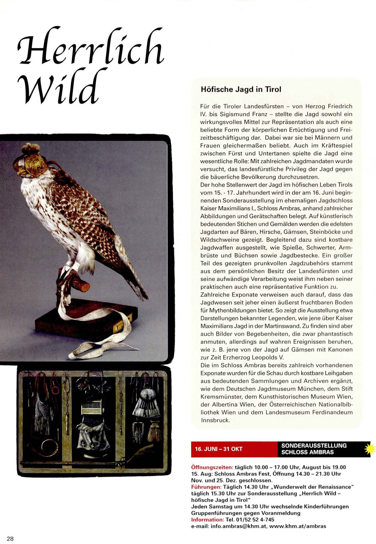 täglich 15.30 Uhr zur Sonderausstellung „Herrlich Wild höfische Jagd in Tirol"