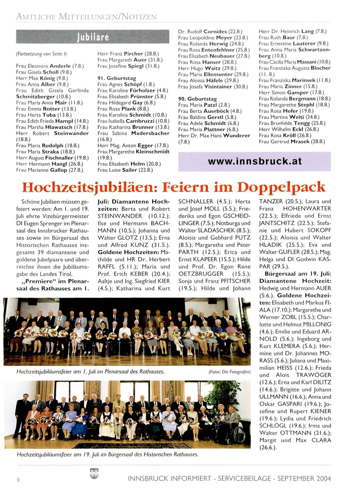 und Josef M O L L (5.5.); Friederika und Egon GSCHEIDLINGER(7.5.);Notburgaund
