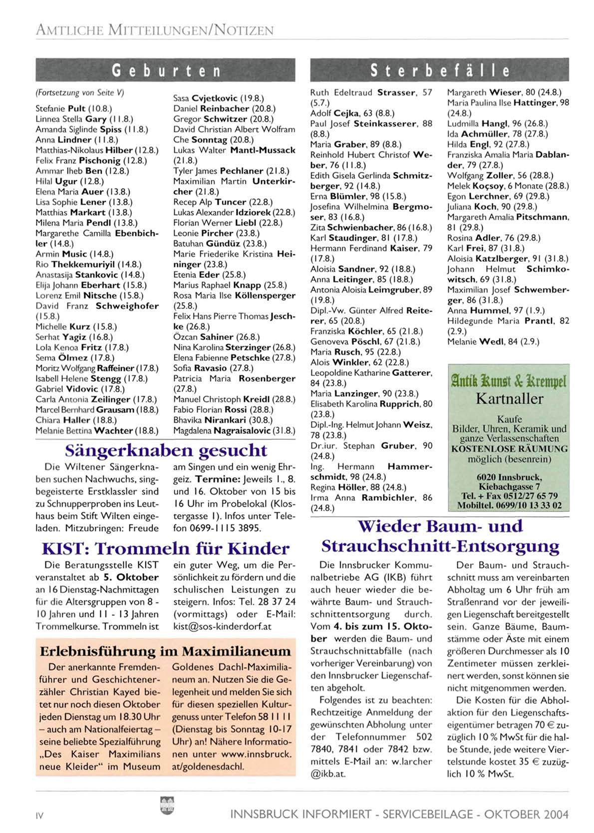INNSBRUCK INFORMIERT - SERVICEBEILAGE - OKTOBER 2004