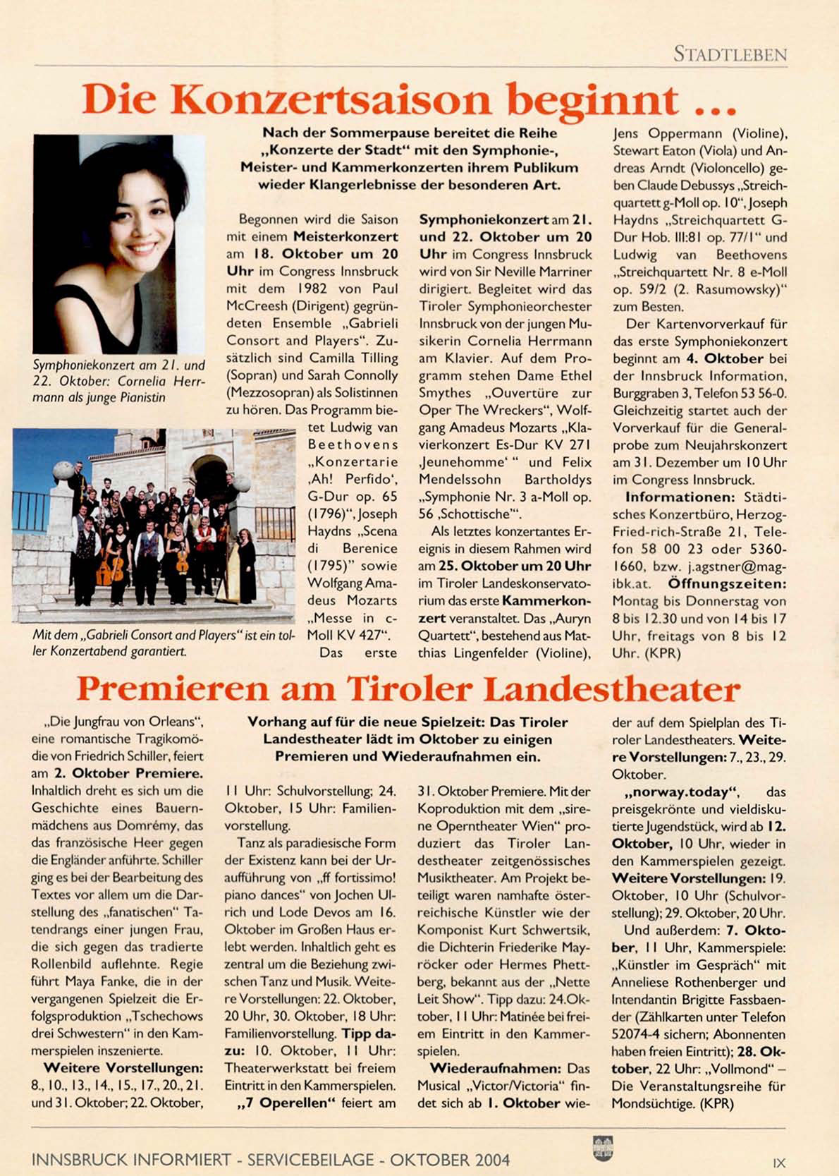 INNSBRUCK INFORMIERT - SERVICEBEILAGE - OKTOBER 2004