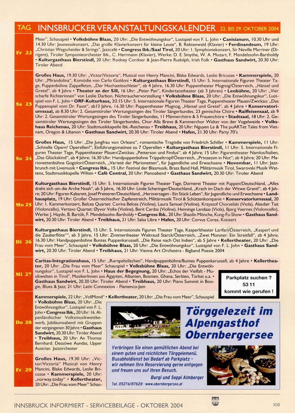 INNSBRUCK INFORMIERT - SERVICEBEILAGE - OKTOBER 2004