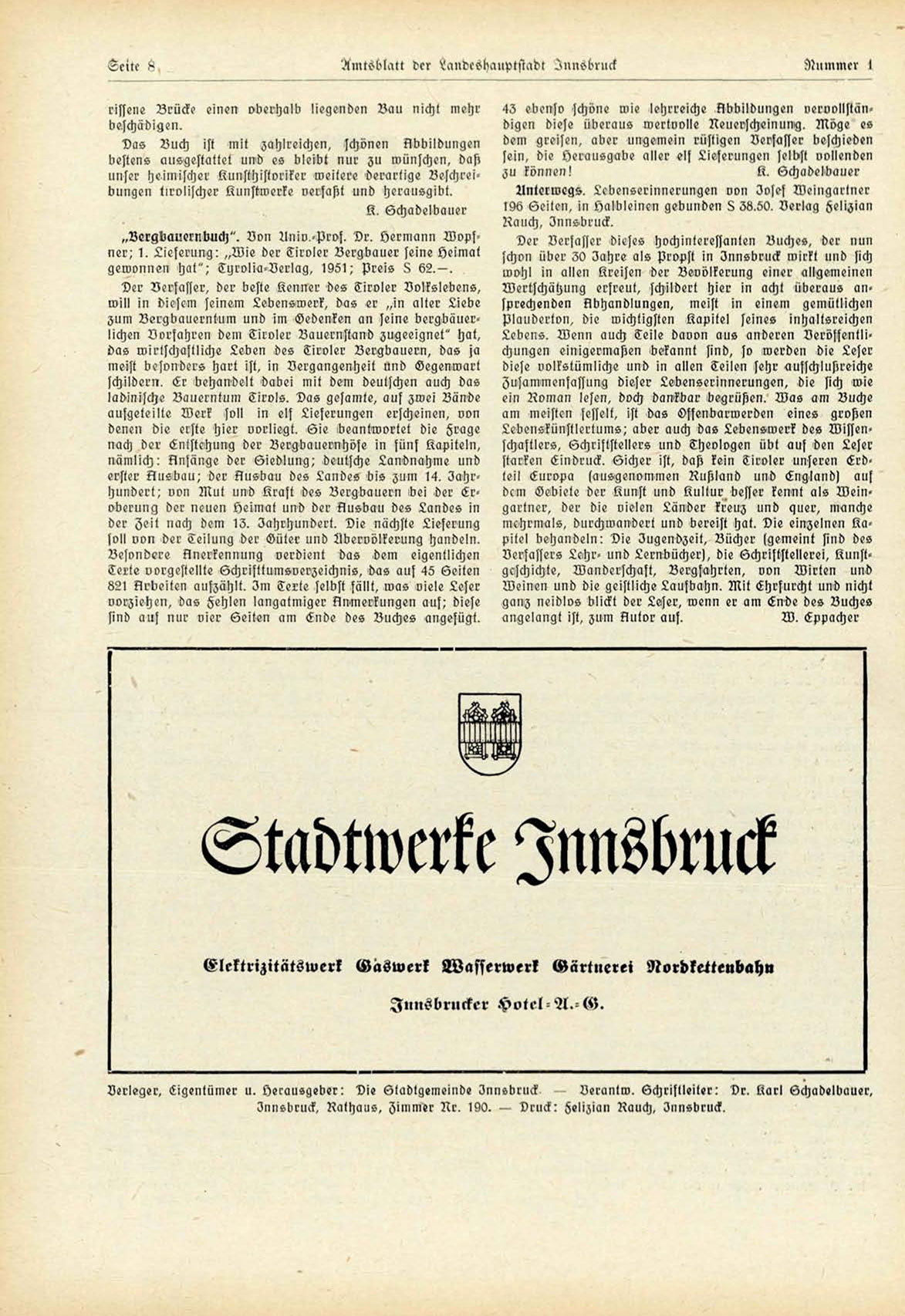 Verleger, Eigentümer u. Herausgeber: Die Stadtgeineinde Innvbrint