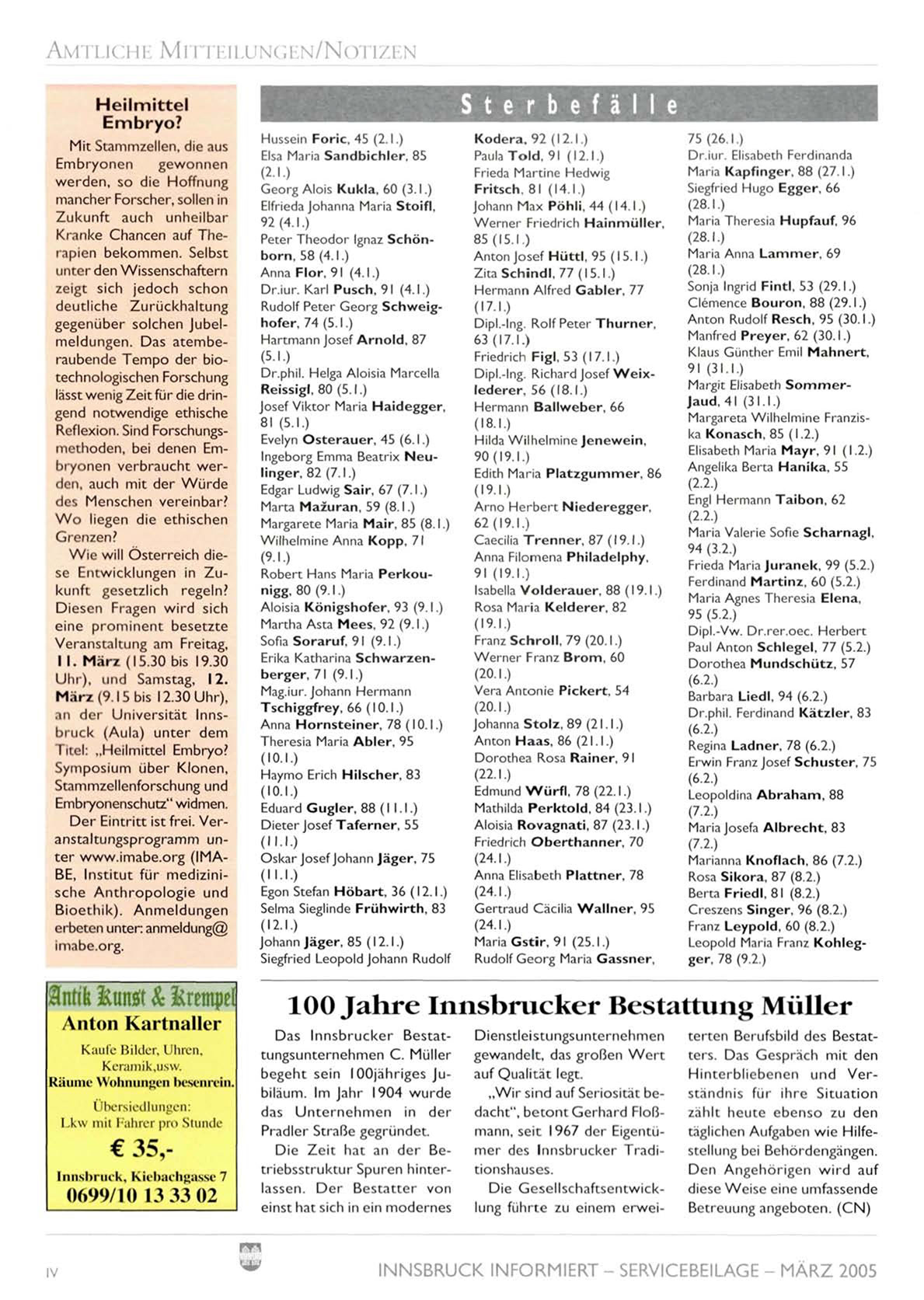INNSBRUCK INFORMIERT - SERVICEBEILAGE - MÄRZ 2005