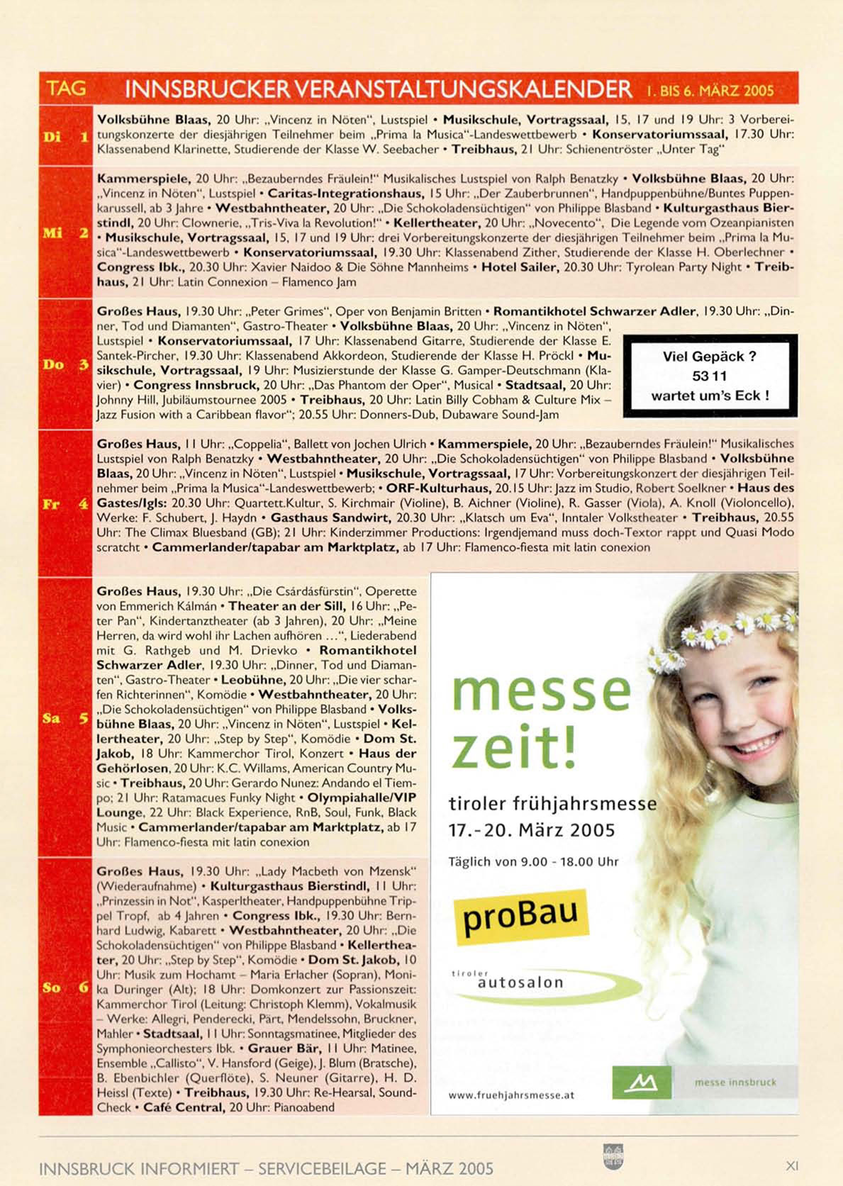 INNSBRUCKER VERANSTALTUNGSKALENDER i. BIS 6. MÄRZ 2005