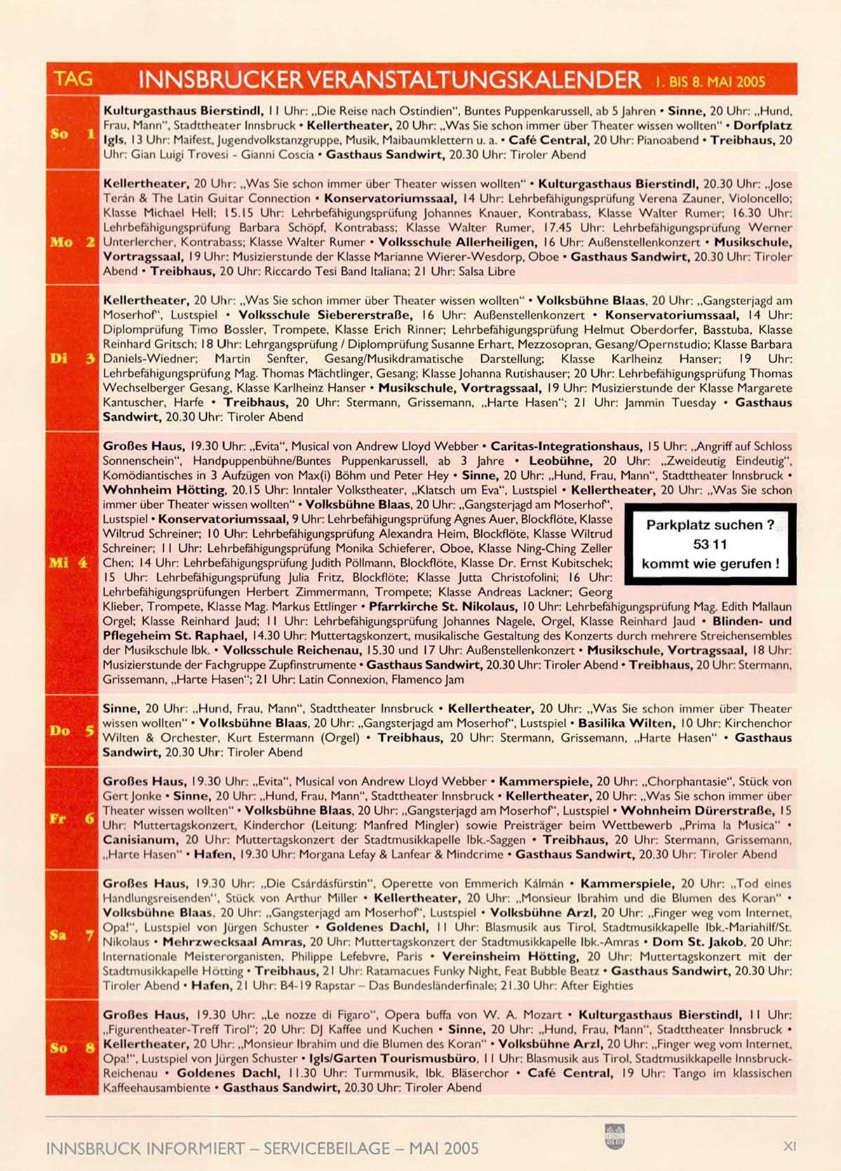 INNSBRUCKER VERANSTALTUNGSKALENDER i. BIS S. MAI 2005