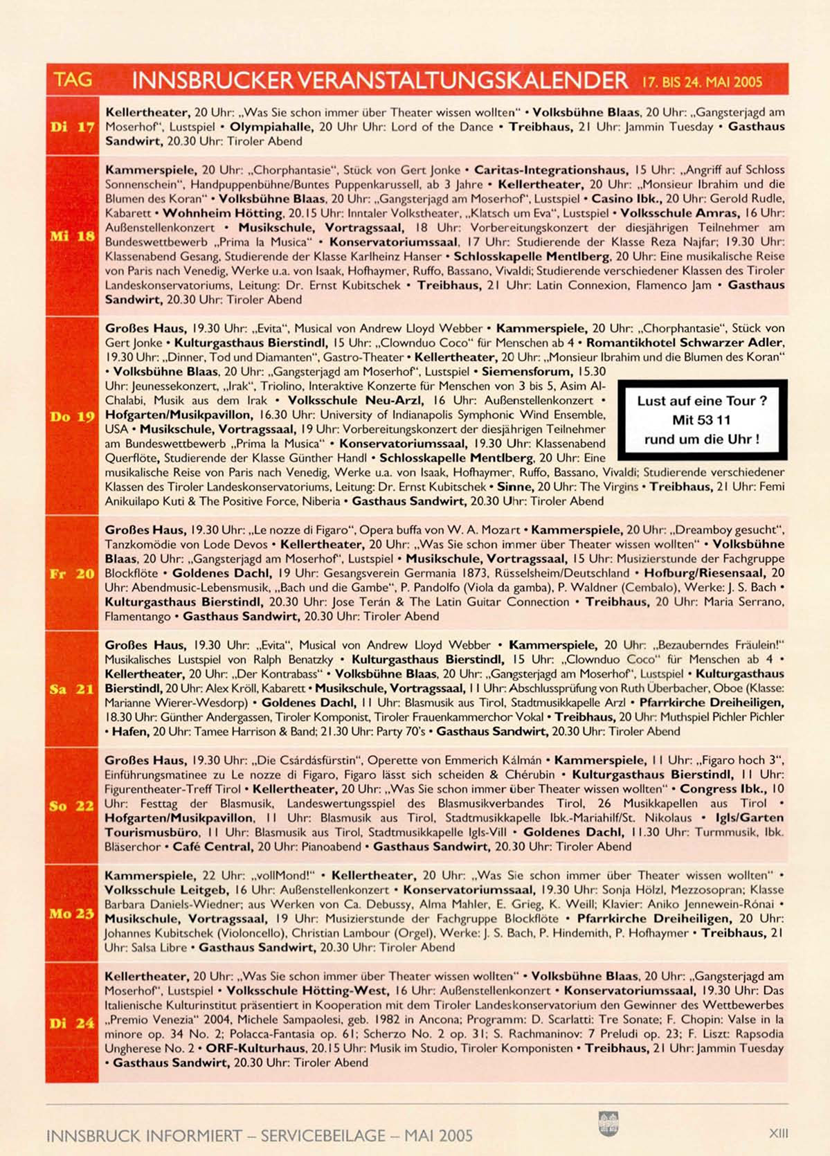 INNSBRUCK INFORMIERT - SERVICEBEILAGE - MAI 2005