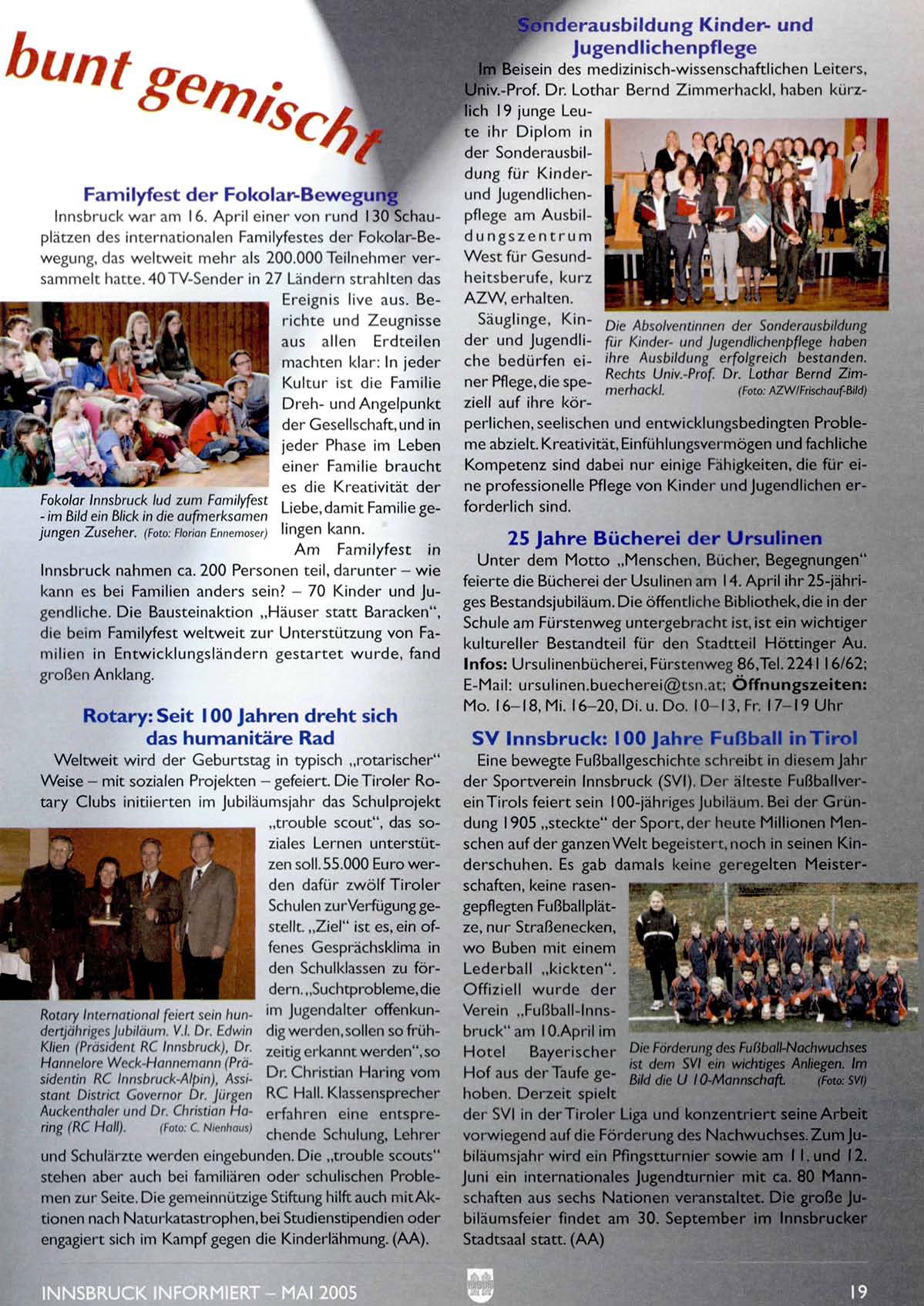 Rotary International feiert sein hun- i m Jugendalter offenkunVerein „Fußball-Innsdertjähriges Jubiläum. V.l. Dr. Edwin dig werden, sollen so früh-bruck" am 10.April im