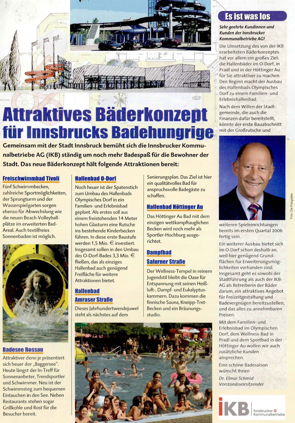 Gemeinsam mit der Stadt Innsbruck bemüht sich die Innsbrucker Kommunalbetriebe AC (IKB) ständig um noch mehr Badespaß für die Bewohner der