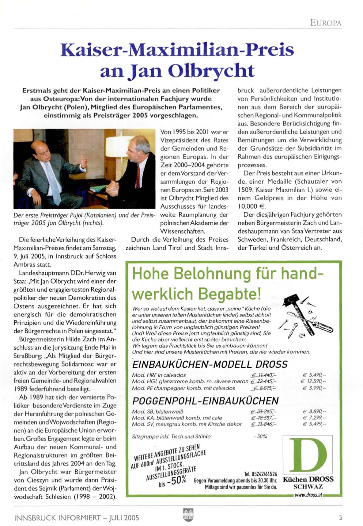 e i n s t i m m i g als P r e i s t r ä g e r 2005 v o r g e s c h l a g e n .